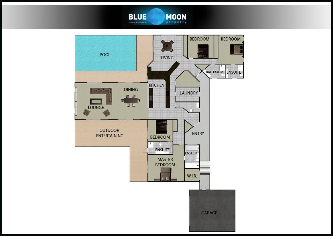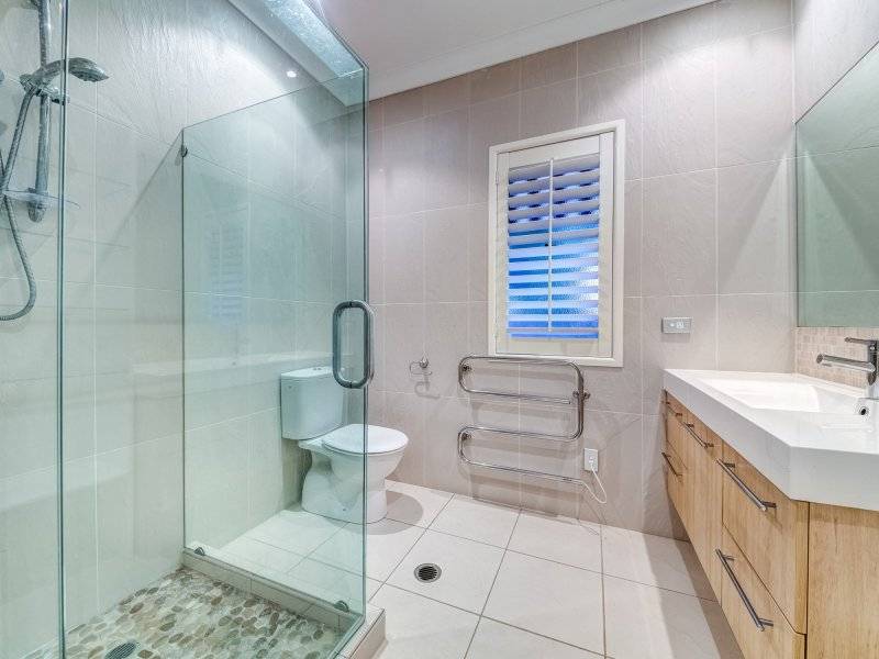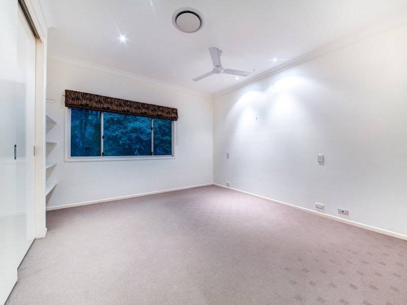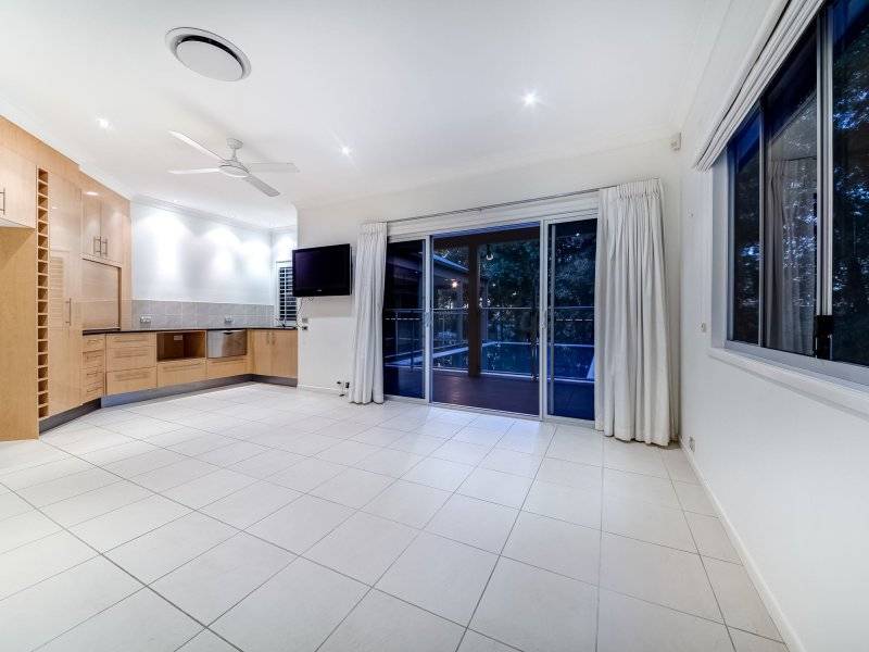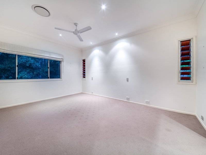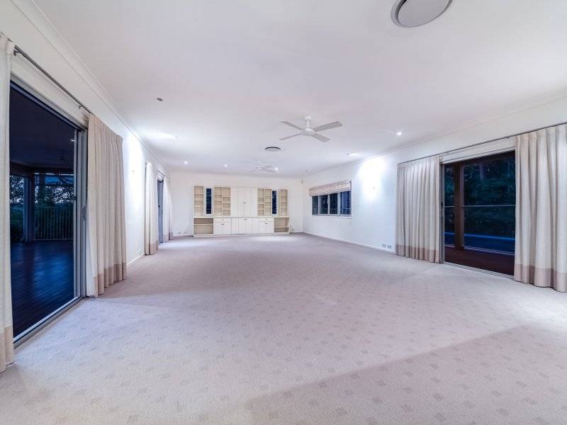 The living room opens on the western side to a huge L-shaped 65sqm. covered deck perfectly designed to enjoy a day of entertainment with family and friends and also opens on the eastern side to a large deck which hugs the large saltwater concrete pebbled pool. Enjoy drinks on the deck watching the sunset over the hinterland or the stars on a beautiful evening in total privacy.