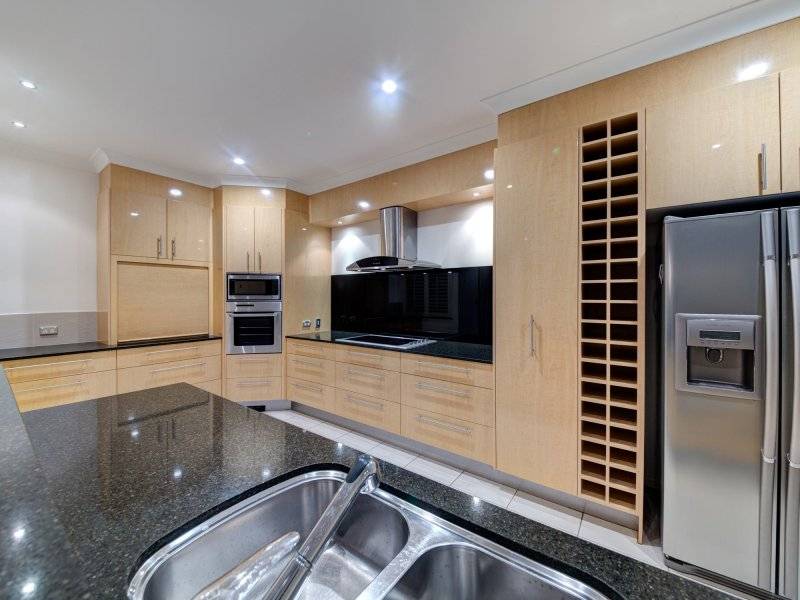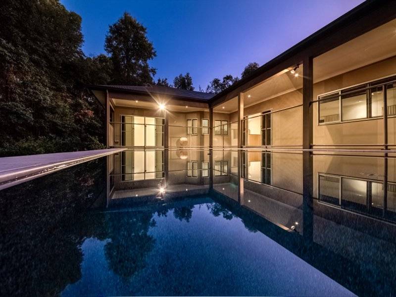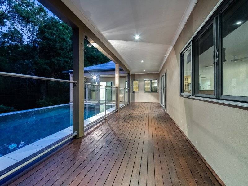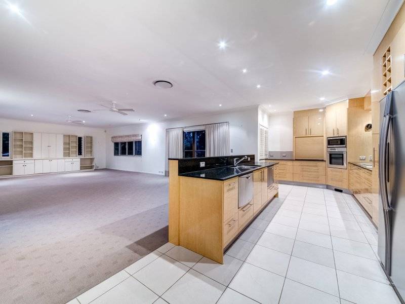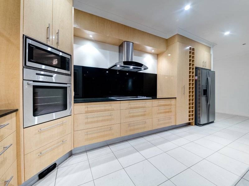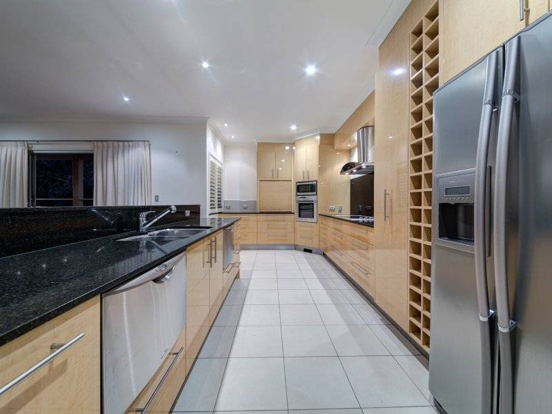 Situated within minutes of the town of Woombye and Palmwoods, private schools and commerce centres, this beautiful home set on almost 2 acres of land is elegant and unique with a WOW factor. The private entrance opens in to a home of first class standards in finish and décor with 9ft ceilings throughout, a massive open plan living/dining/kitchen and wide doors and windows inviting plenty of natural light. The beautiful galley style kitchen with granite benchtops and glass splashback is well-appointed with modern quality features, such as 2 x drawer dishwashers, waste disposal, deep double sinks, deep drawers, built-in wine rack and lots of overhead cupboards. The 2 door fridge/freezer with ice maker and cold water dispenser will stay as a bonus.