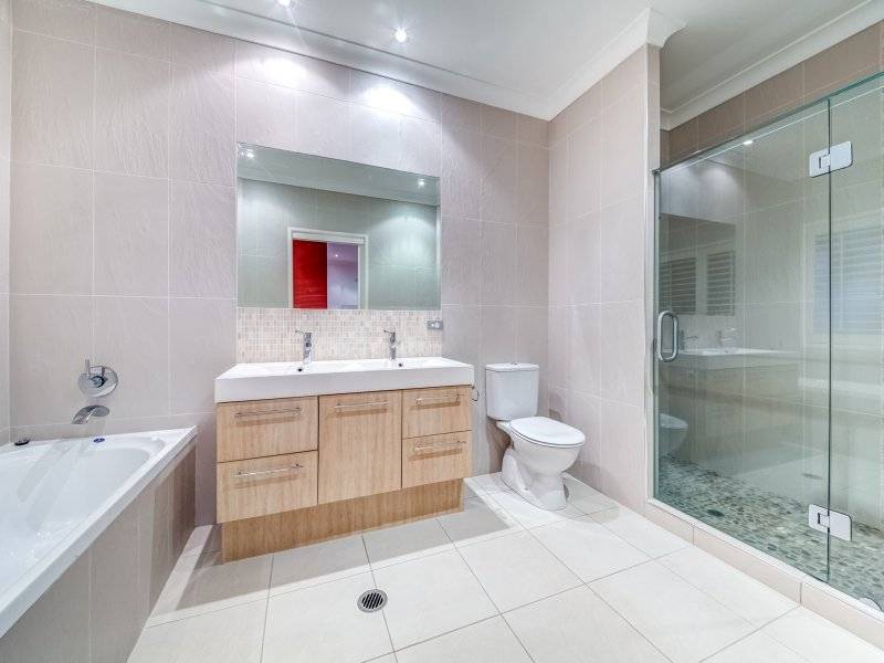 As you walk in from the main entrance, to your left is the massive master bedroom privately situated away from the living areas and features large double glass doors which open onto the front deck. The beautiful spacious ensuite is second to none with its double size shower, his and hers vanity with anti-fog mirror, large deep bath, heated towel rails and floor to ceiling tiles in soft neutral colours. The walk in robe next to the ensuite has lots of hanging space and available room for increased storage expansion. The second double size bedroom with built-in robes and its own large ensuite is coupled with the master bedroom in this wing of the home.