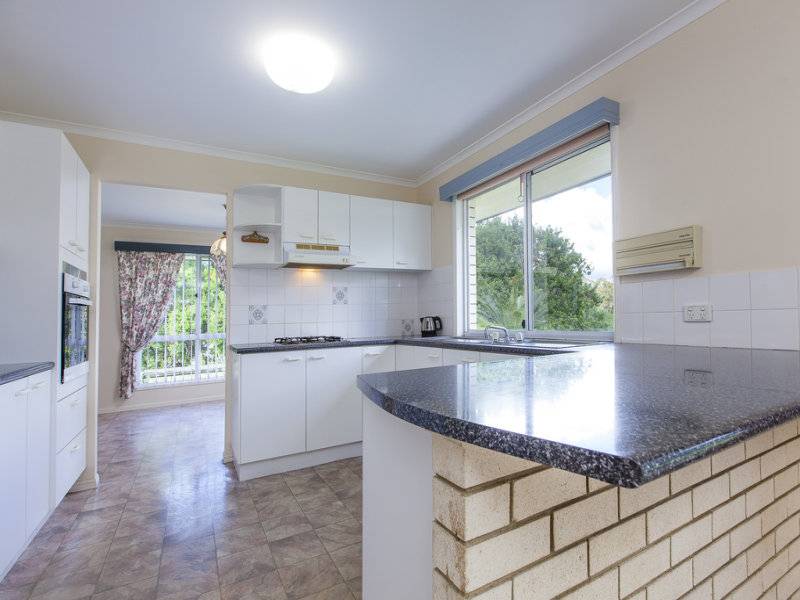 Flanked by park like surrounds of expansive green lawn, fruit trees and established garden beds, the house’s interior remains bright and open, benefitting from an abundance of natural light. The double door entry opens to reveal spacious multiple living areas, separated by a well appointed kitchen that overlooks the sparkling in ground swimming pool, lush backyard & outdoor entertaining area; ideal for those who like to entertain friends and family or cook while keeping an eye on what the kids are up to.