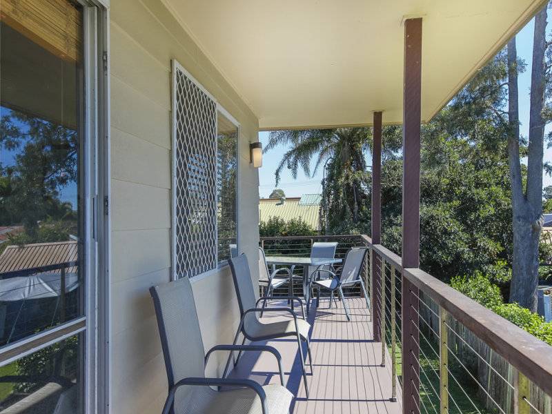 Upstairs are three bedrooms including the main plus another bathroom at one end of the house, and a bright & open living room, spacious kitchen with enough cupboard and bench space to please the fussiest cook at the other. The wrap around balcony is a highlight guaranteed to be the scene of much relaxing and entertaining, posing the not so difficult choice of enjoying the beautiful river views or overlooking games of cricket and footy in the flat, grassy backyard.