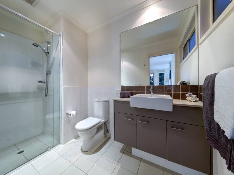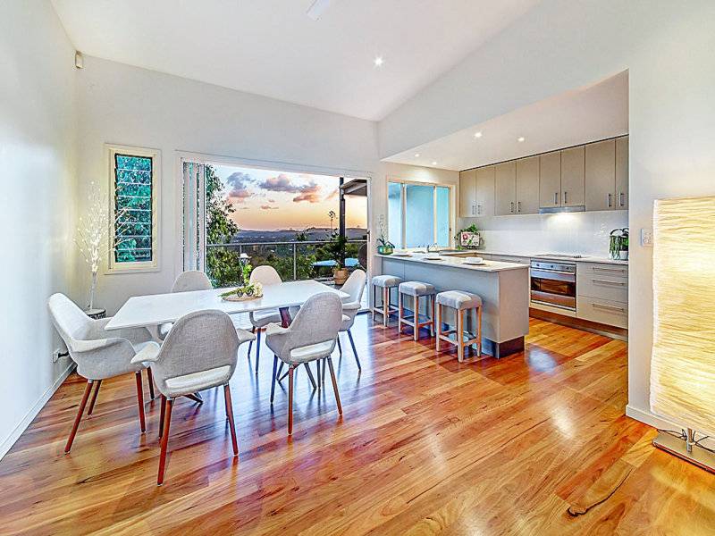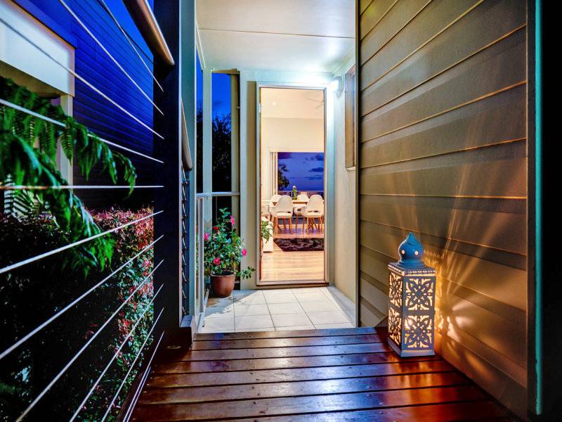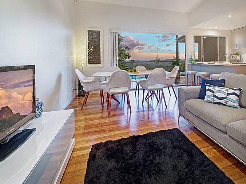 Looking like it just fell from the cover of a Home Beautiful mag, this prestige townhouse radiates an uplifting sense of harmony throughout that you can actually ‘feel’. Walk down the tropical boardwalk entrance, open the front door and be completely dazzled by the views spread out before you. Swathes of greenery lead your eye to the Glasshouse Mountains, which, depending on the time of day back-dropped by blue skies or by dusk’s pink and golden light – memorable, rare and exuding matchless appeal with complete privacy.