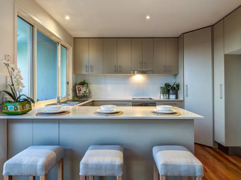 • Contemporary dream kitchen with stone benches and breakfast bar