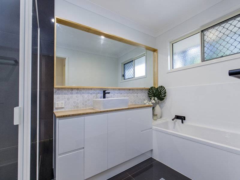 The master suite is simply special, positioned at the front of the home and boasting full length bay windows, you will love waking up to local views over the tree-lined street below. An oversized walk in robe is there of course, leading to the impressive ensuite that boasts bamboo benchtops and 600x600 porcelain floor and wall tiles that blend perfectly to make both the ensuite and main bathroom a real feature of the property.