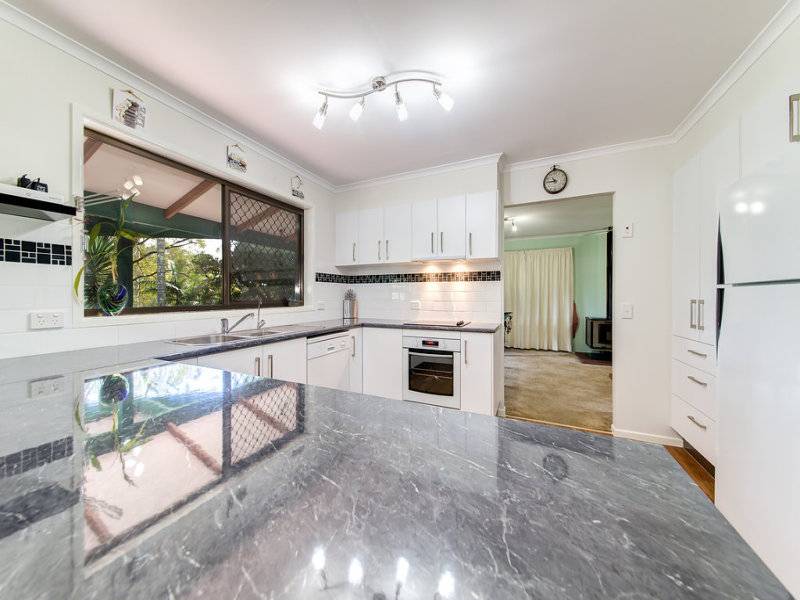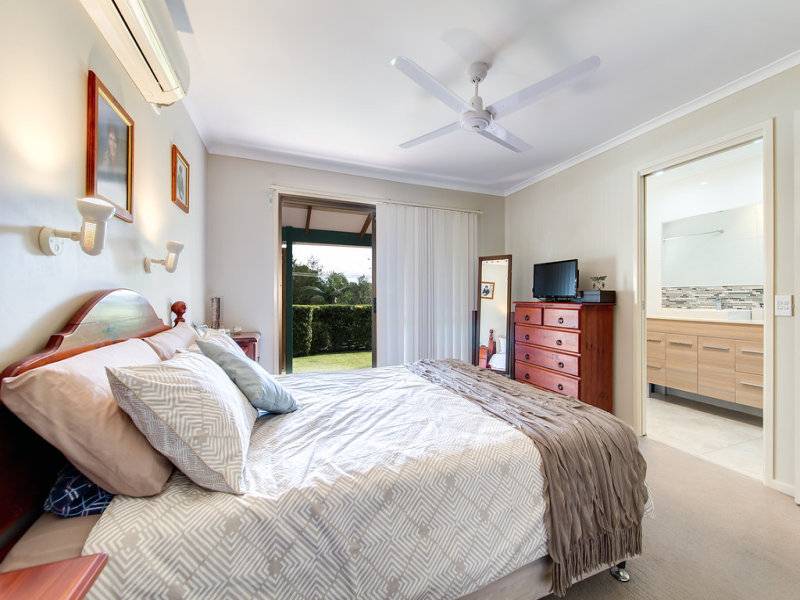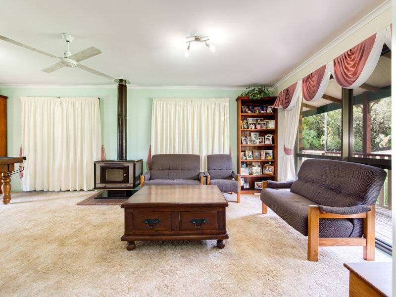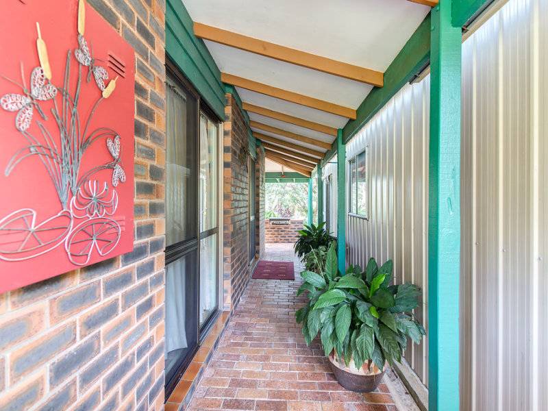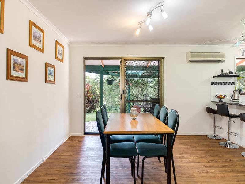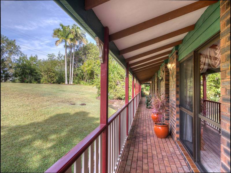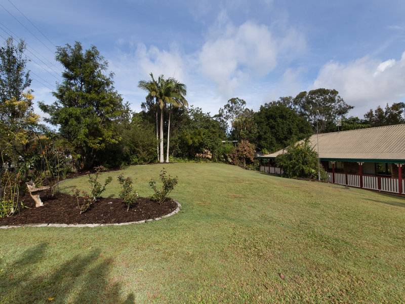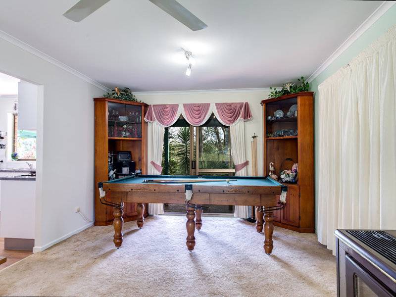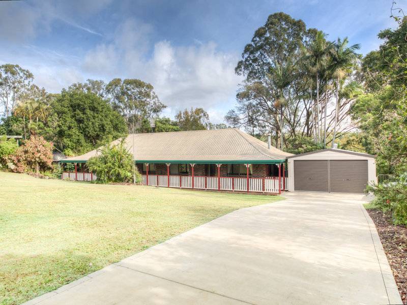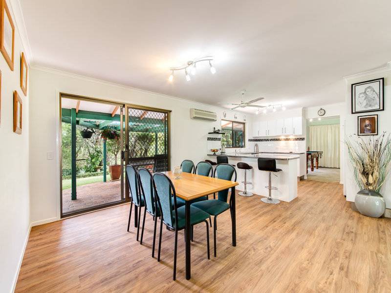 Nestled in one of the most sought after location in the hinterland is this character low set brick home on 2 acres of very usable land. Boasting great space for your family, pets and toys, this is a rare entry-level buy into prestigious acreage locality. Well set back from the road, it gives you a big frontage, wide concrete driveway and privacy. It has 2 large living areas; open plan lounge, massive dining area and a modern kitchen (only 18mos. old), ceramic cook top, electric oven, range hood, dishwasher, pantry, plenty of cupboard space and large drawers. This open plan area is serviced by a large reverse cycle air conditioner and ceiling fans. The separate family room/formal dining/pool room is very spacious with fireplace and is located next to the kitchen. There are 4 bedrooms; the king size main bedroom a built-in robe, brand new