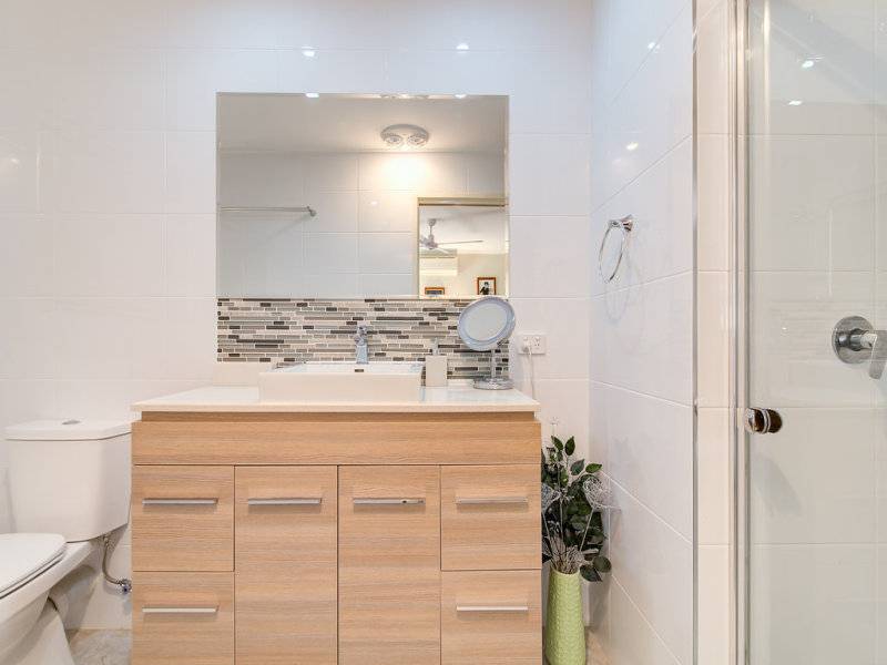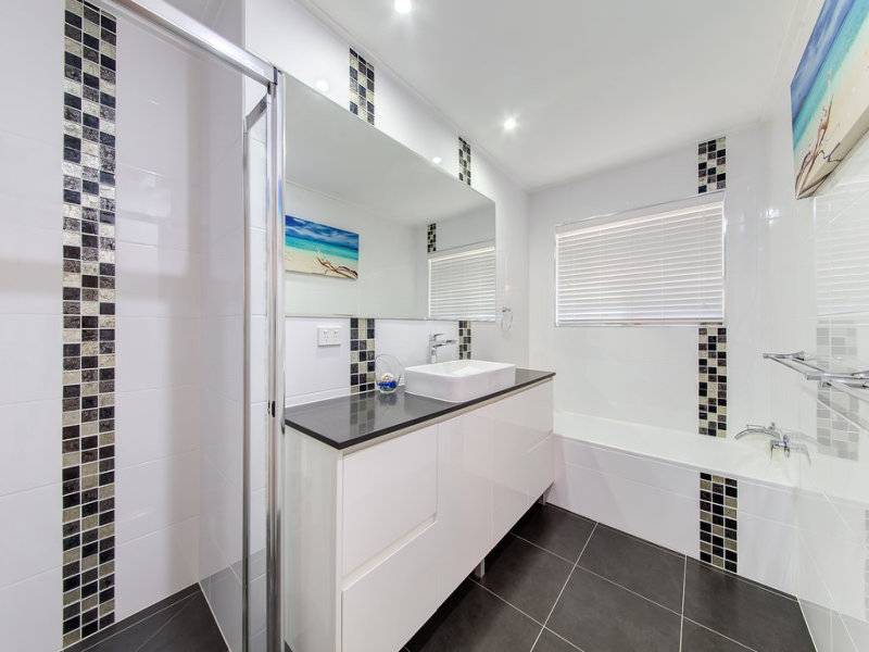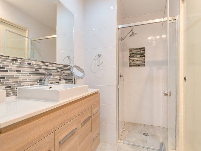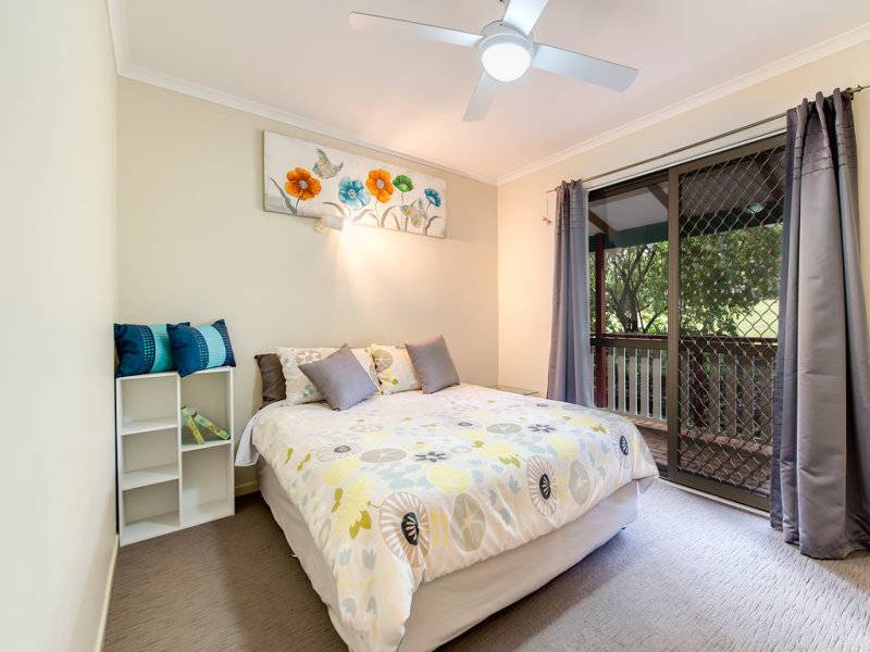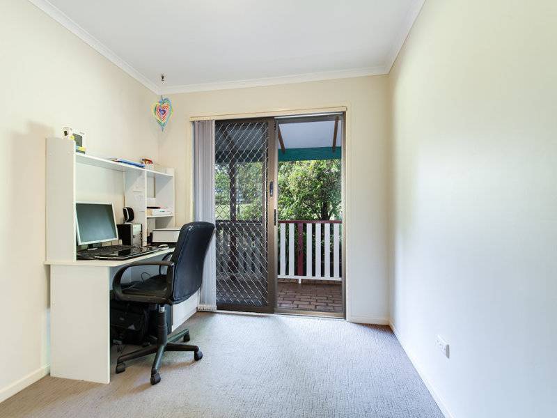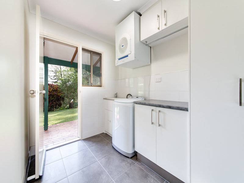 reverse cycle air conditioning, a very modern ensuite (3yrs old) with shower, floor to ceiling tiles and heat lights. The modern 2nd bathroom also has floor to ceiling tiles, bath, shower, heat lights and a separate toilet. Next to it is the modern laundry with extra storage space. It is located close to the 3 great size bedrooms with built-in robes and ceiling fans except the 4th bedroom. You have the option to use it as a study. All bedrooms have access to the covered decks.