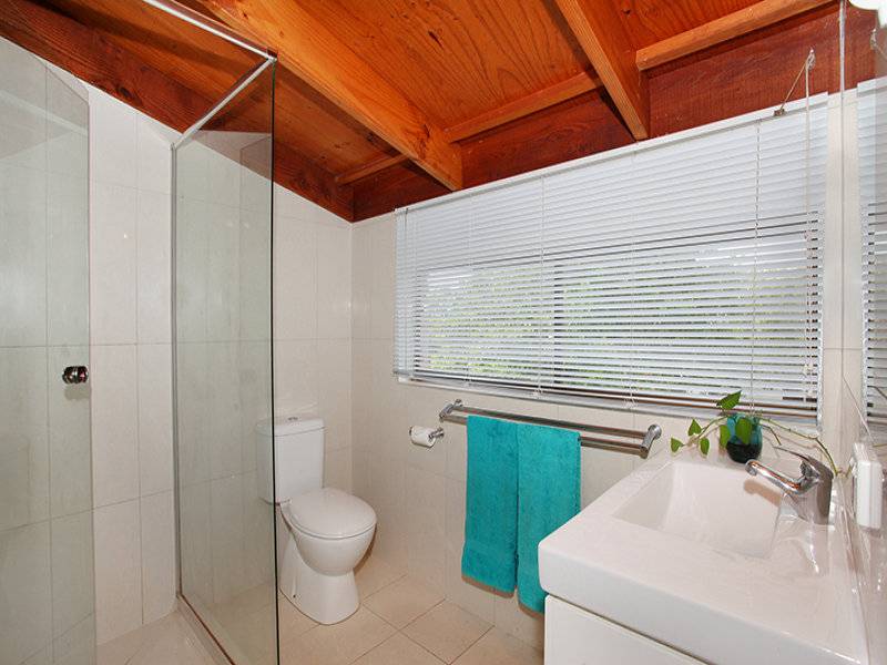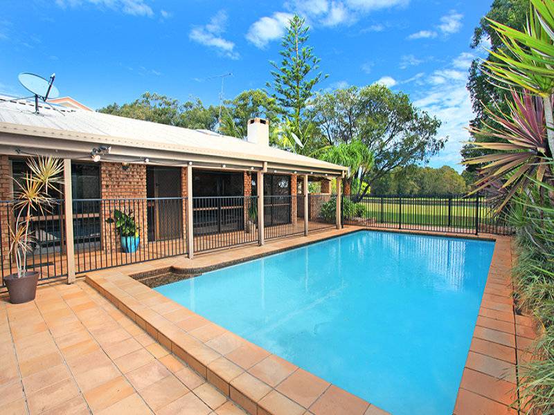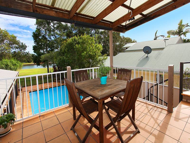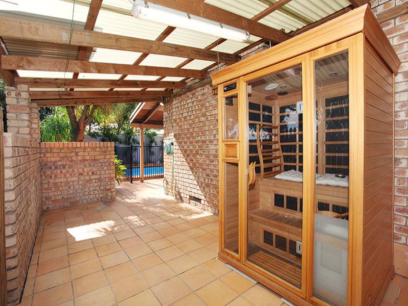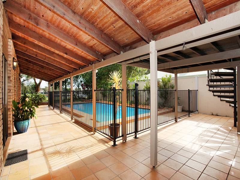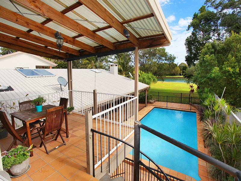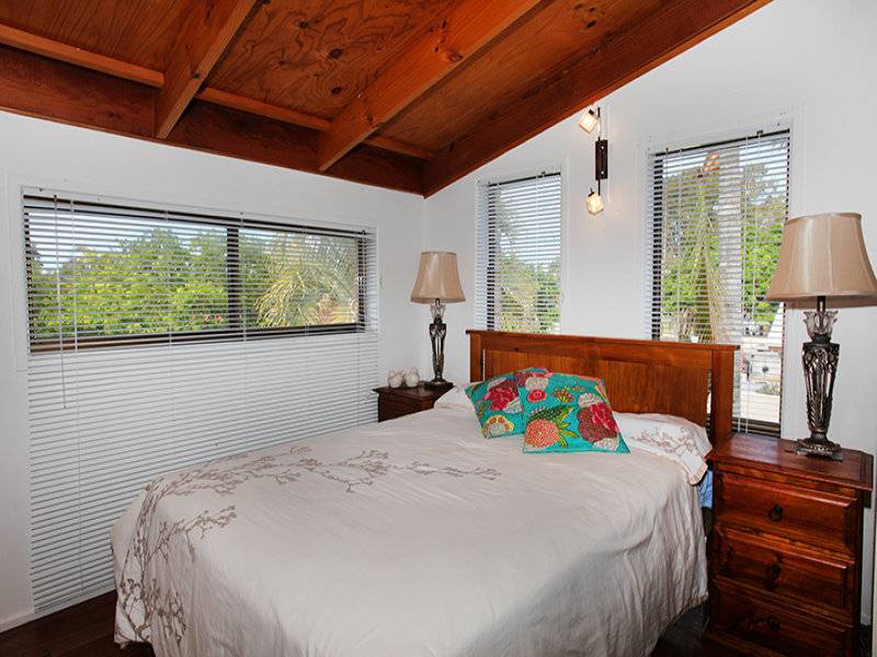 Above the double garage is a granny flat / studio complete with bedroom, renovated bathroom and room for a kitchenette. There’s also a covered patio which takes in views over the pool, park reserve and the Mooloolah river.