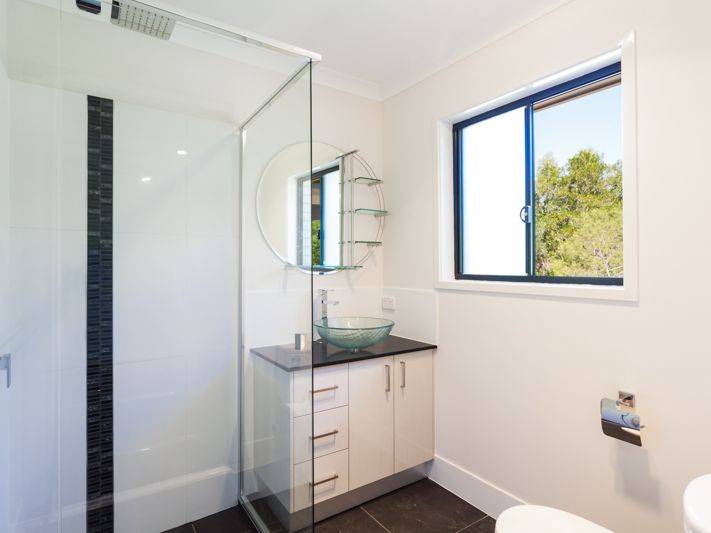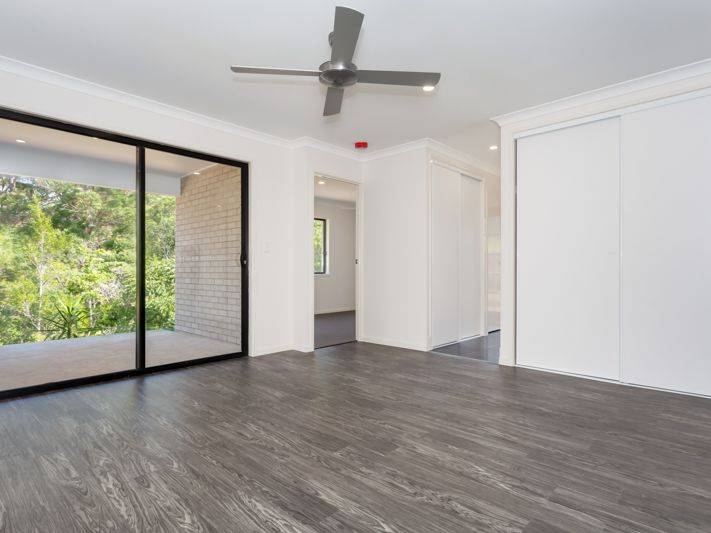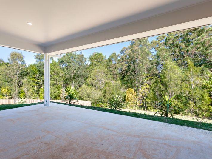 Capturing forest views from its elevated position this modern/ brand new home showcases a functional layout and a selection of indoor/outdoor living areas with room for a pool.