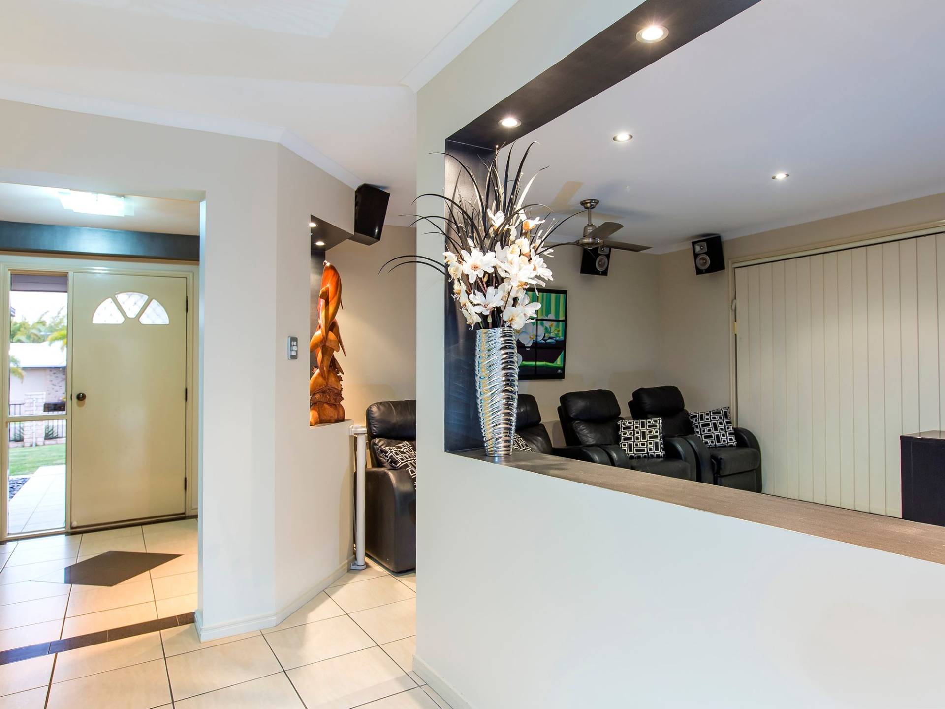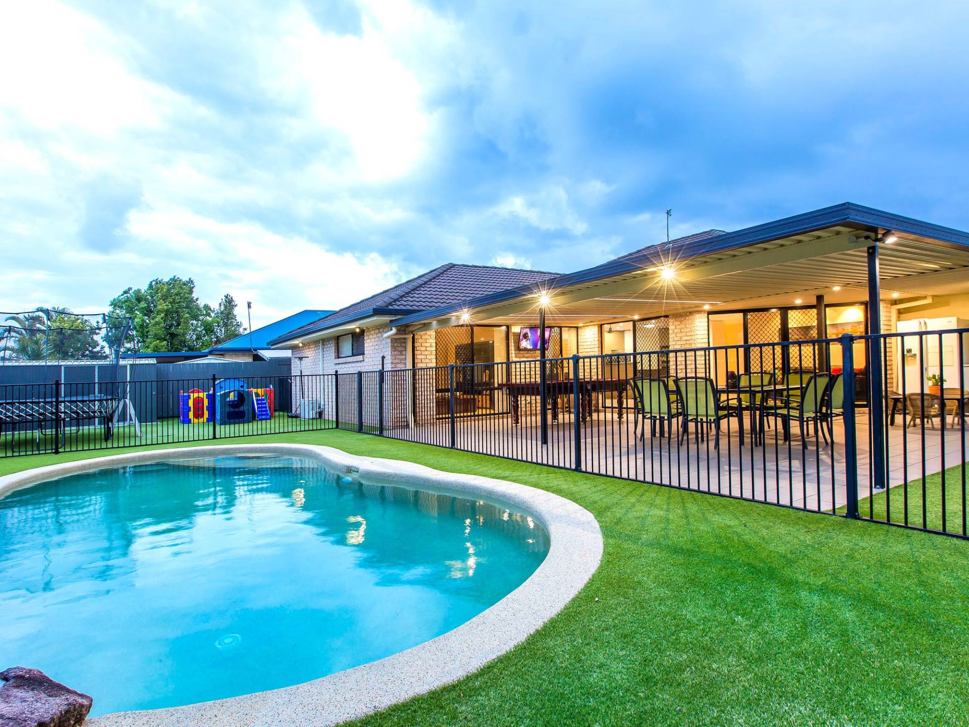 Immaculate and amazing are the first things that spring to mind when attempting to describe the endless value packed features of this Family home. Fun filled activities await the new buyer courtesy of some very fussy sellers who have added to the overwhelming appeal of living at Pelican Waters. Whilst the water ways of Golden Beach, Bulcock Beach and Dicky Beach await your latest fishing or water sport activity, the sheer joy of just sitting around relaxing in your own private 749m2 park like setting will have you equally happy to stay at home and entertain. The residence is a very special combination of a valuable position and an extremely large homestead that could not possibly be replaced for the price it can be bought for. A clever approach to design results in a sensible separation for the children’s quarters and the master suite. The master suite benefits from its well thought out positioning and overlooks the heart and soul of the property, which is the private outdoor alfresco area unlike anything I have seen before in size. The space continues in every area of the parents retreat with a walk in robe fit for a king and a queen and the children will be able to enjoy their own heart and soul of their quarters as they will inherit ownership of their own private play room and the choice of 3 bedrooms with built in robes.