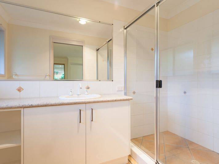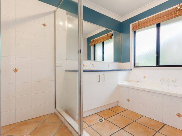 The Rumpus room is substantial in size and accesses the front deck as well as the back yard, and has been cleverly set away from the other living spaces. All three bedrooms are of generous proportions and have built-in robes and fans with the master benefitting from an air-conditioner. The master has a large robe and ensuite, complete with an oversized shower.