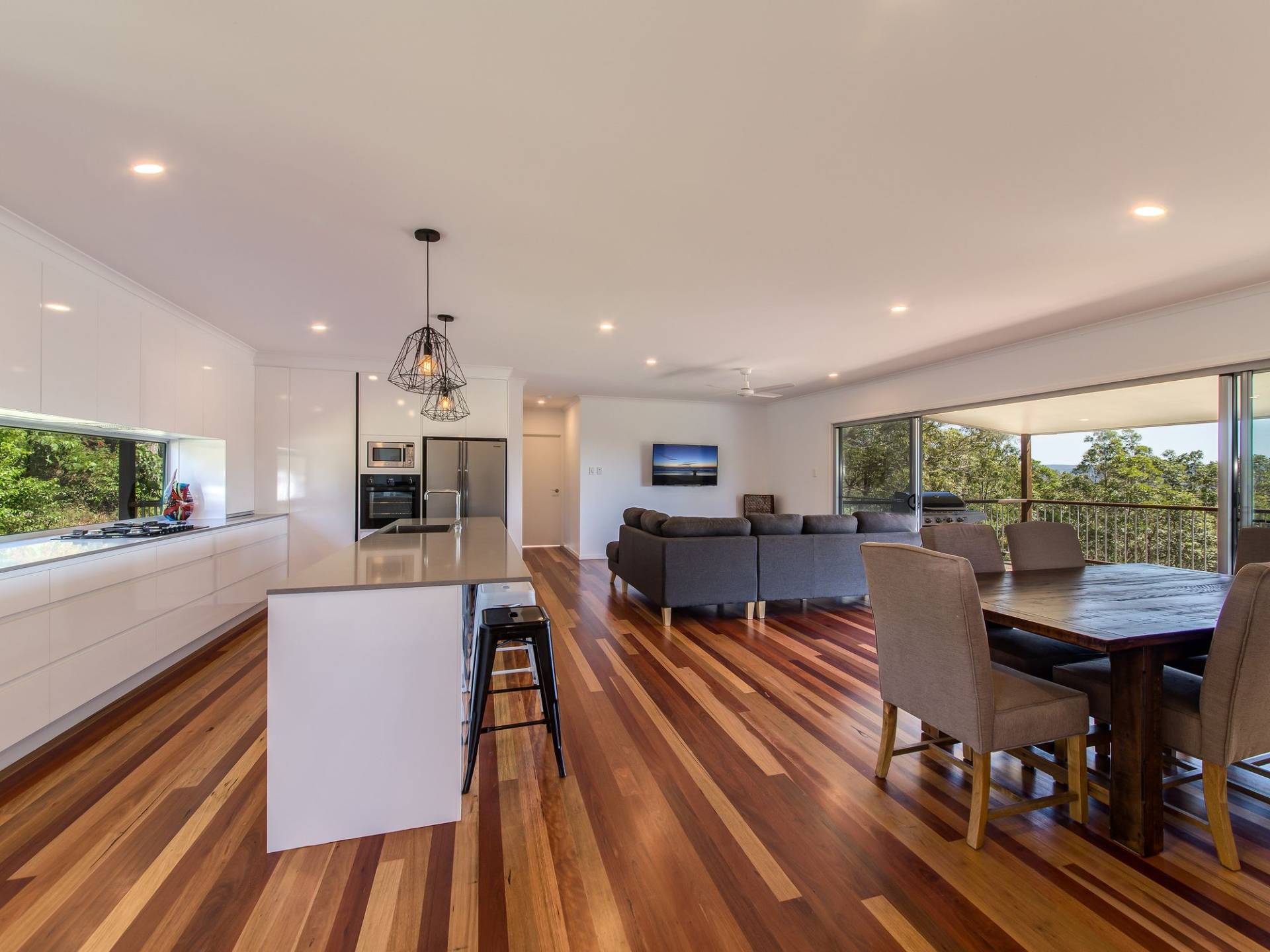 Large open plan living & dining opens to large deck