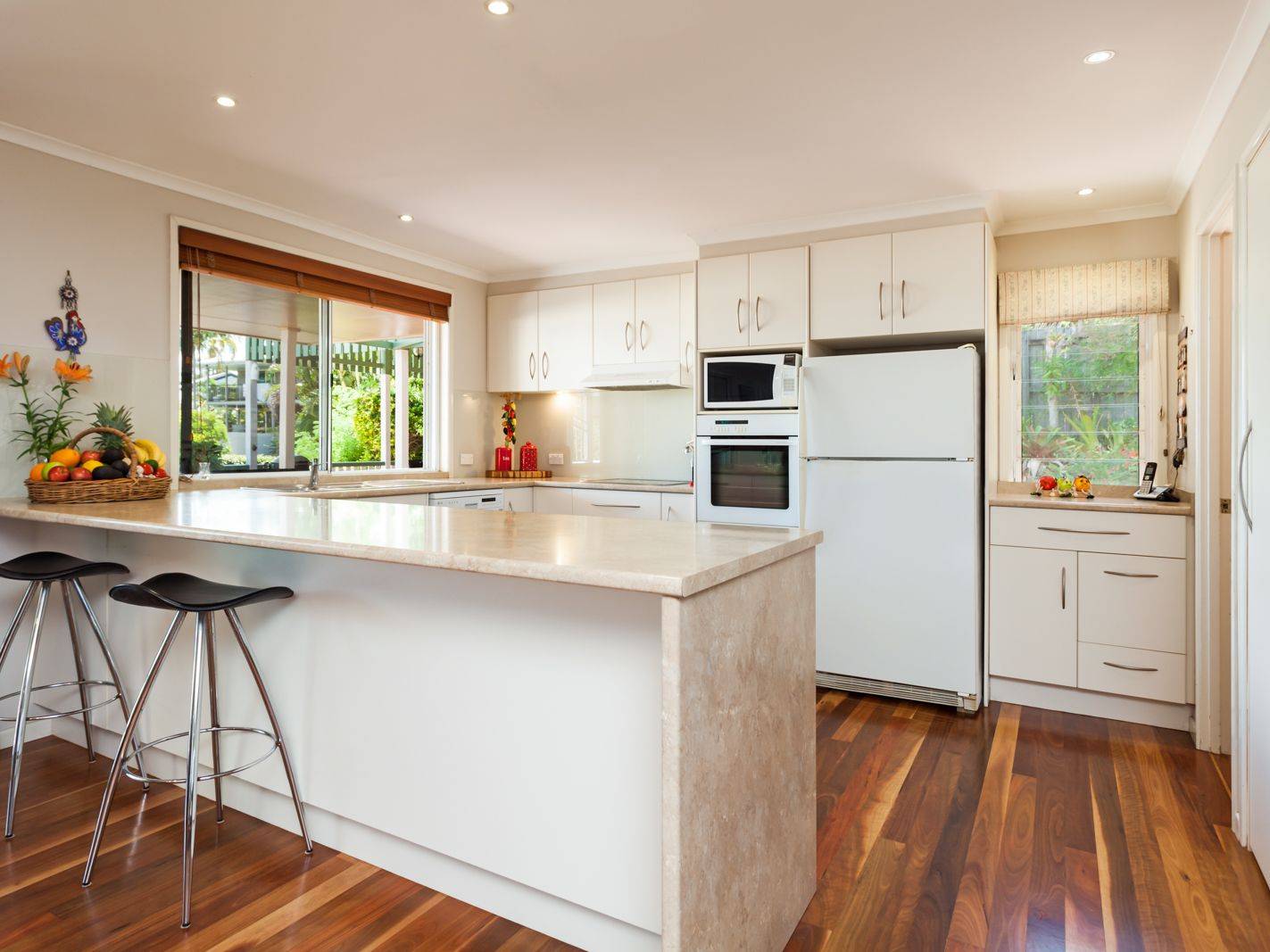 The kitchen is generous in size with plenty of cupboard space. The living areas have appealing spotted gum hardwood timber flooring, is air-conditioned and has a bright and airy feel that flows throughout the home. Downstairs has the 4th bedroom, a separate living area that could be used as a rumpus or media room. There’s conveniently a 3rd toilet as well downstairs if you’re staying down there or out in the garden. The downstairs layout could suit a dual occupancy situation or potential. The double garage is remote controlled and has a great sized space underneath the home for a workshop, cellar or storage. All this and much, much more is set on just under 1,000m2.