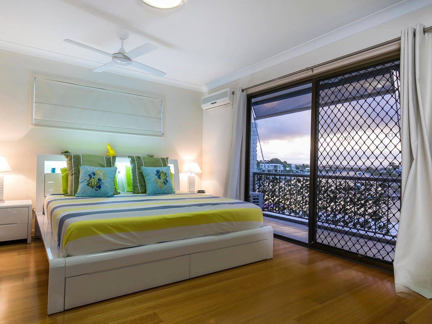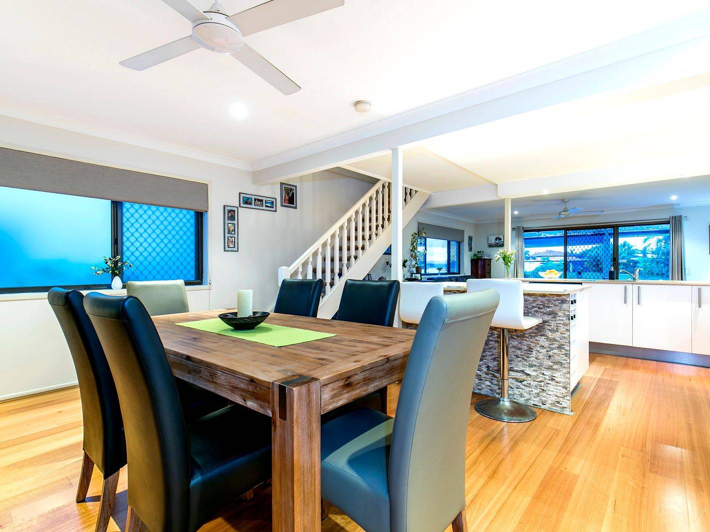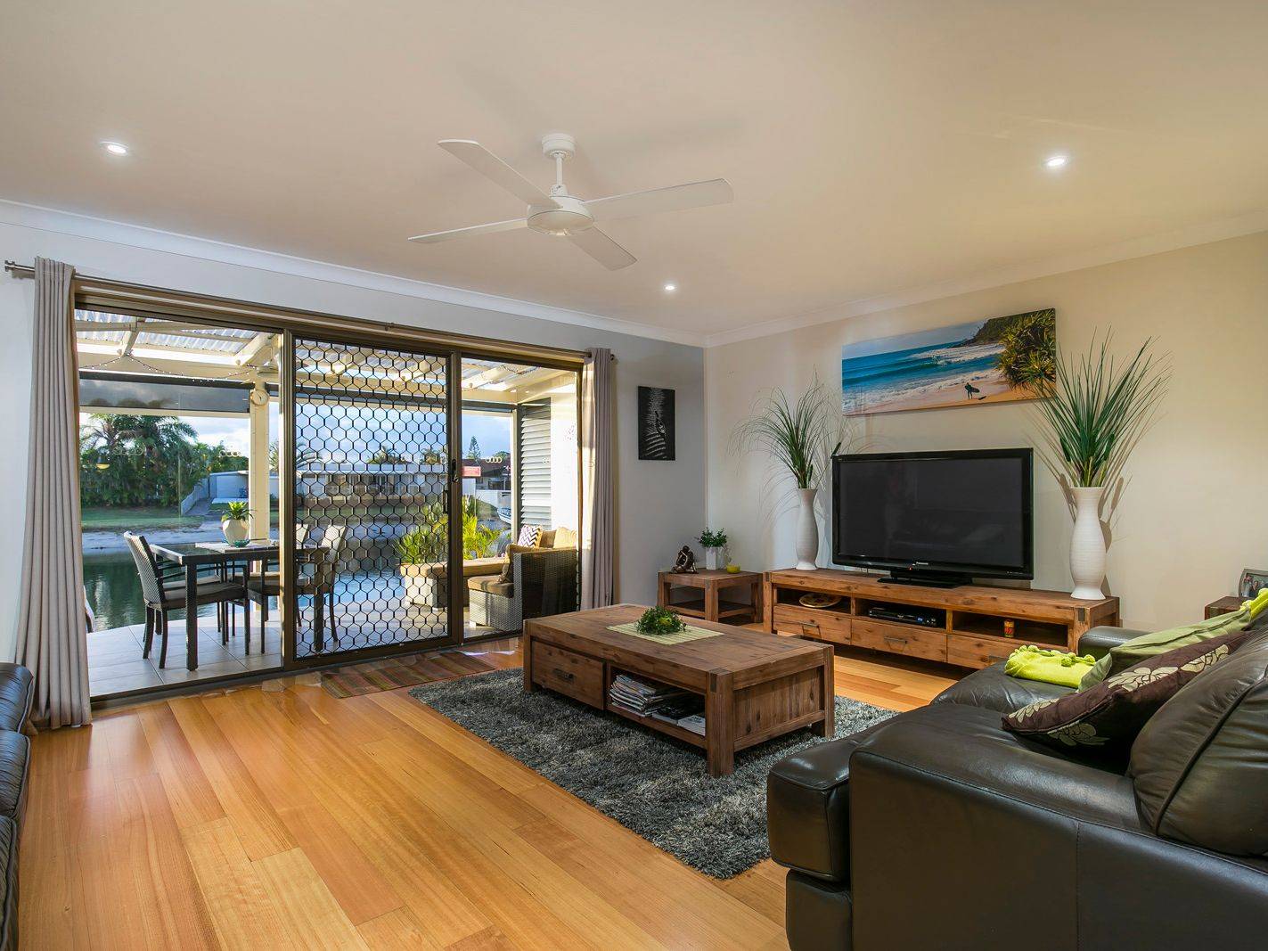 * Postcard views along the Maroochy canal from the downstairs living, kitchen and master bedroom upstairs