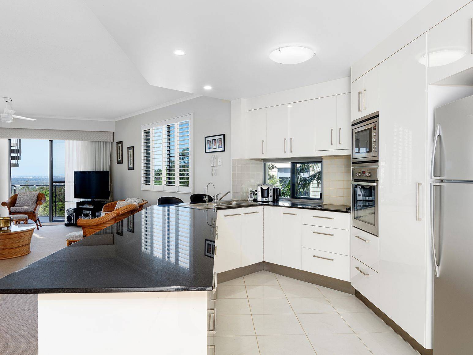 - Spacious open plan living merges with spectacular outdoor living over two levels.