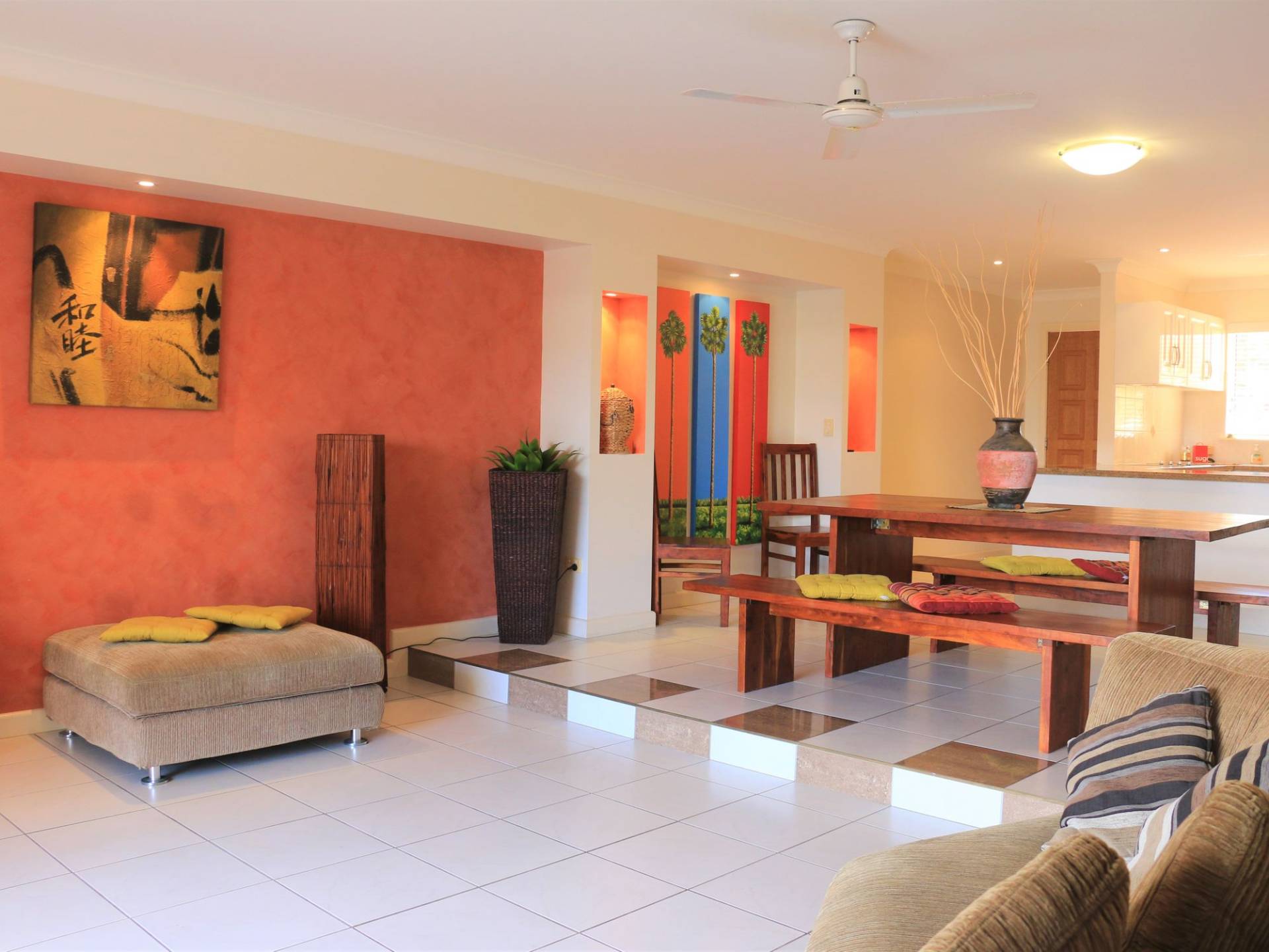 - Open plan living and dining.