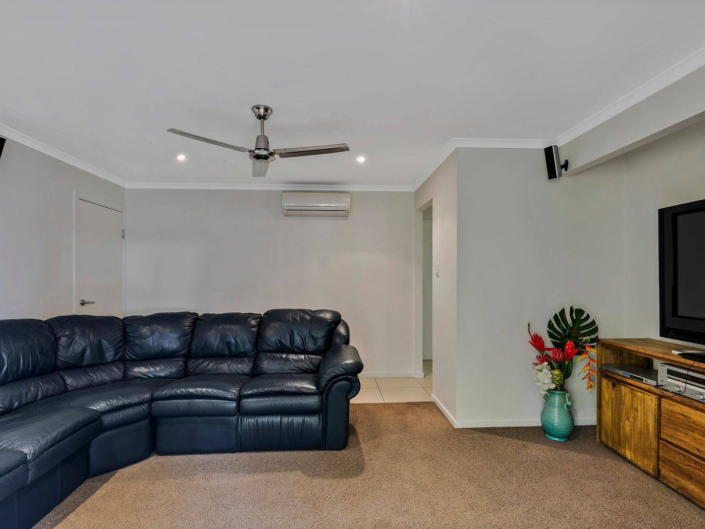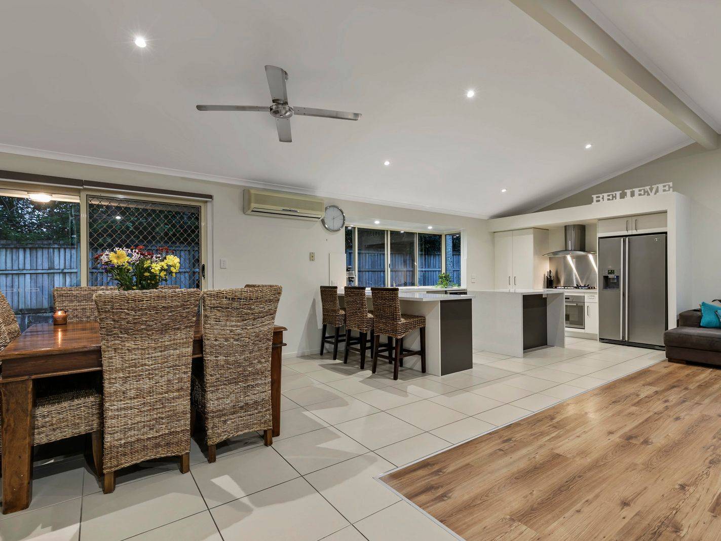 The adjacent lounge creates an inviting environment for the family with plenty of natural light and room to spread out. High ceilings and air conditioning complete a very functional living zone.