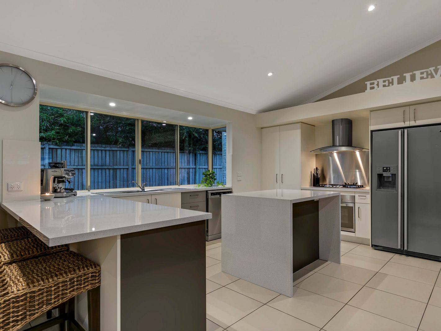 Stepping inside, the main living area is modern, spacious and practical. The kitchen offers stainless appliances, a gas cooktop and rangehood, large oven and dishwasher, as well as generous storage, preparation areas and breakfast bar.