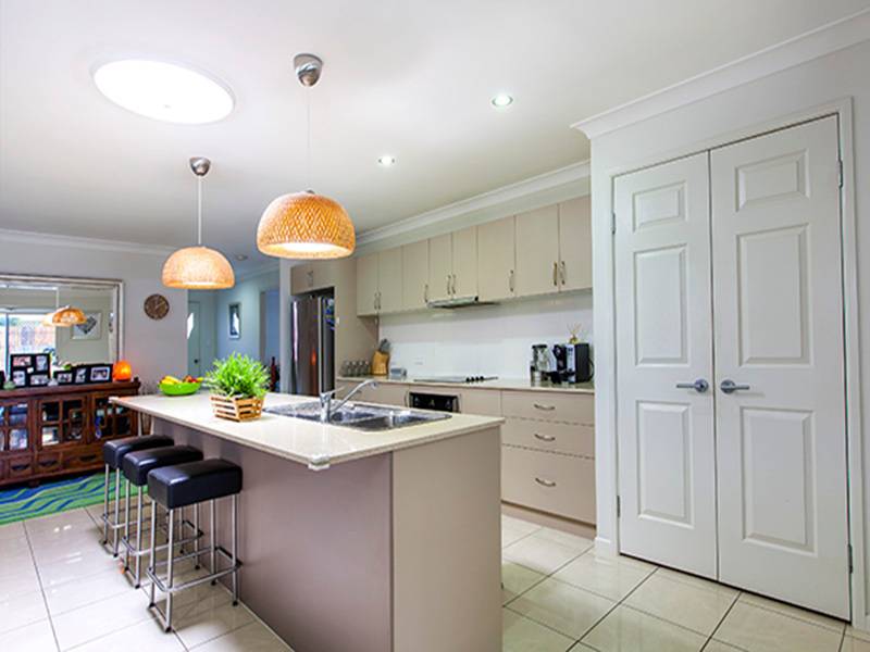Outside it couldn't be more Queensland, a large front and rear fenced yard provide plenty of useable space to kick a footy or hit the neighbours kids for six. The two year old in ground pool is there of course, to cool off after a long day at work or when a 5 minute drive to the beach is just 5 minutes too long.