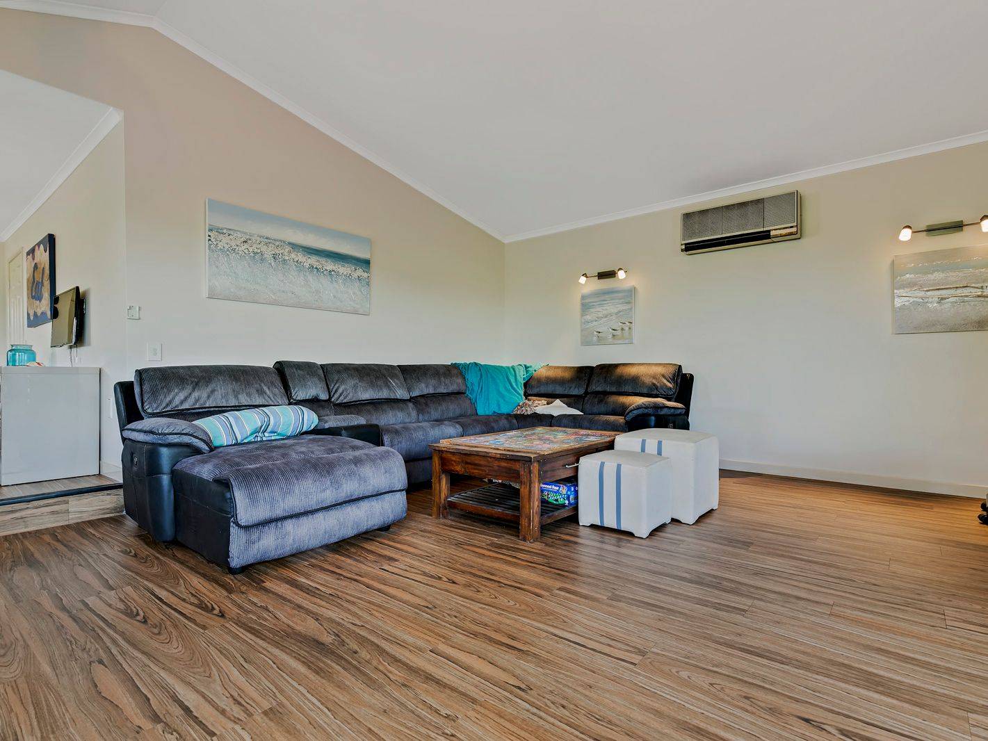 The stunning newly appointed kitchen is spacious offering stone benchtops, plenty of storage with quality appliances and overlooks the deck and swimming pool. Spacious living areas with air conditioning and ducted vacuum throughout.