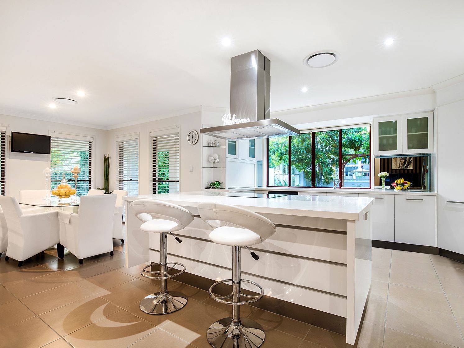 The spacious master suite features a luxurious ensuite that you would expect to find in a five star spa resort. Prepare to be wowed! Positioned away, this opens to the outdoor deck and stunning tropical gardens creating a tranquil private space. The remaining bedrooms are also spacious, all include ducted airconditioning and built in wardrobes.