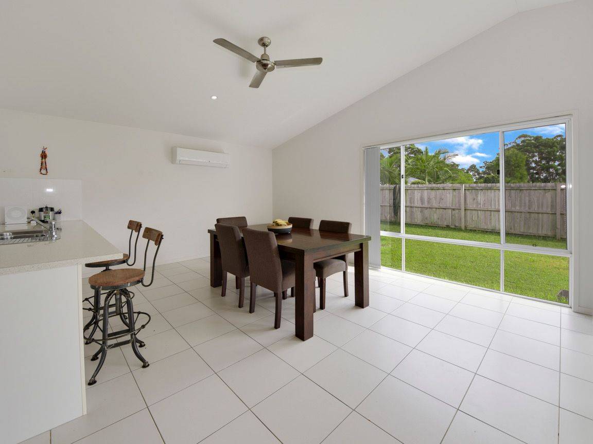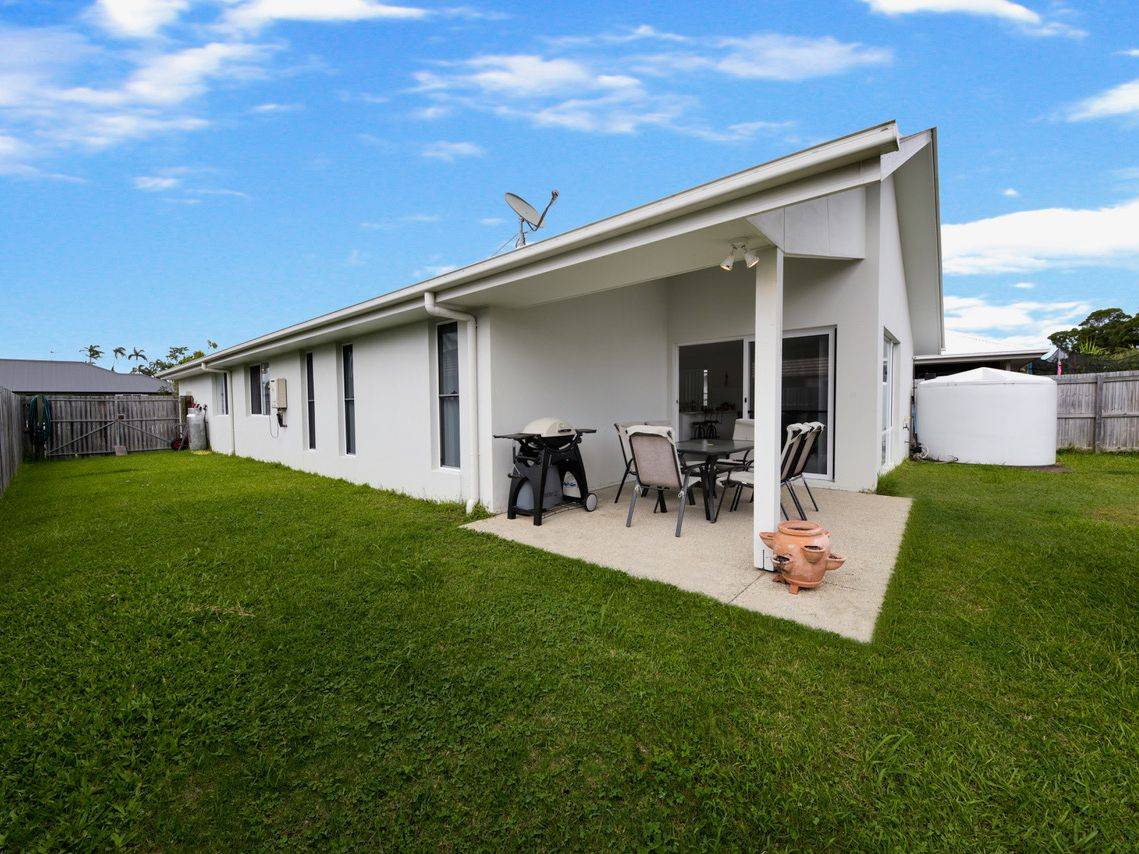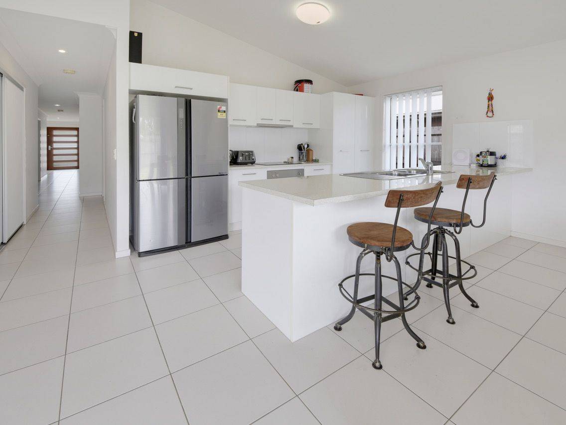 Internally, the property features four spacious bedrooms all with ceiling fans. The tiled kitchen + living area is open plan, with plenty of room for the whole family to occupy the space together. This space is also air conditioned for comfort in the hot summer months.