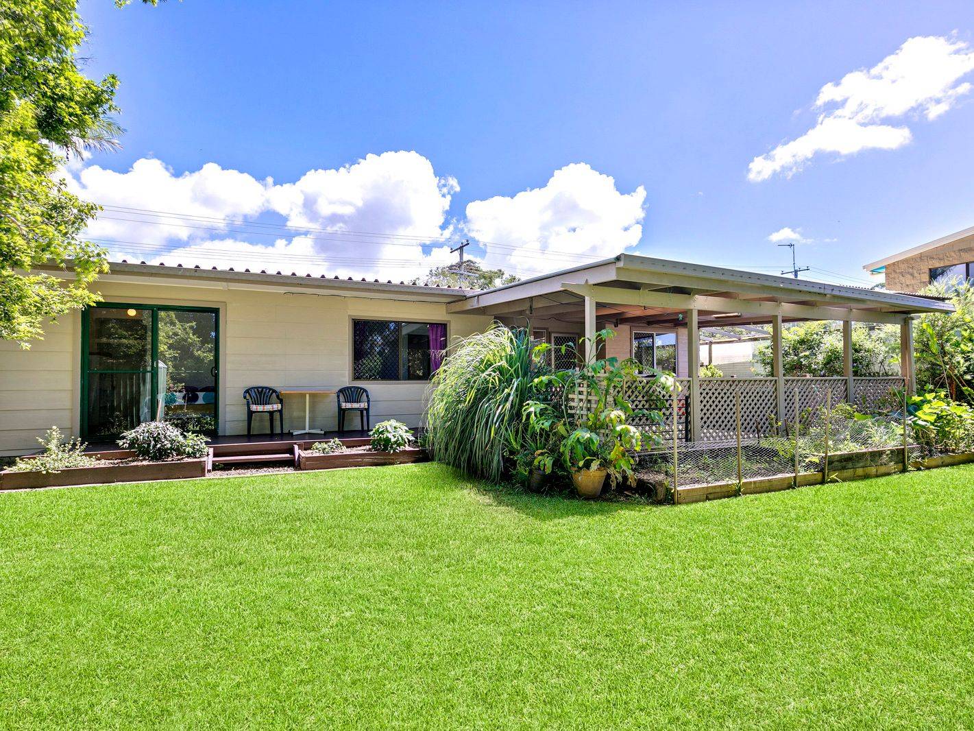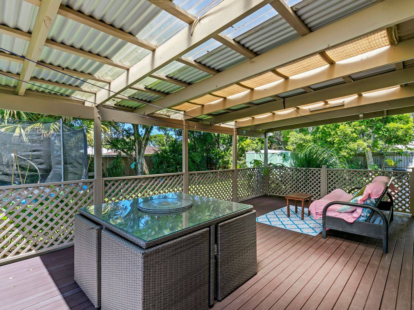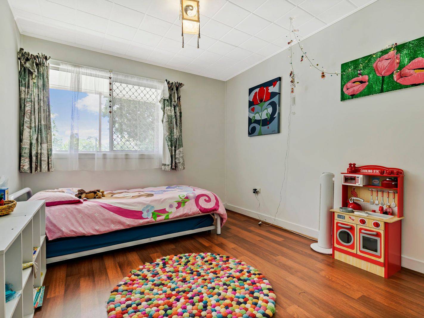 • Fenced yard with space for the swing set or trampoline, and a perfect setting for a pool as required. Existing kids cubby stays!