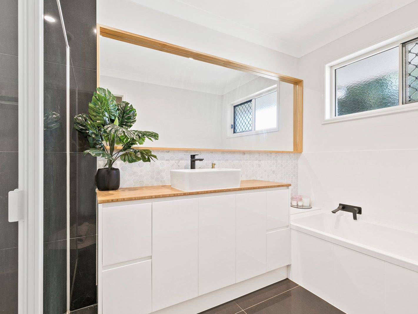 The master suite is simply special, positioned at the front of the home and boasting full length bay windows, you will love waking up to local views over the tree-lined street below and adjacent acreage. An oversized walk in robe is there of course, leading to the impressive ensuite that boasts bamboo benchtops and 600x600 porcelain floor and wall tiles that blend perfectly to make both the ensuite and main bathroom a real feature of the property.