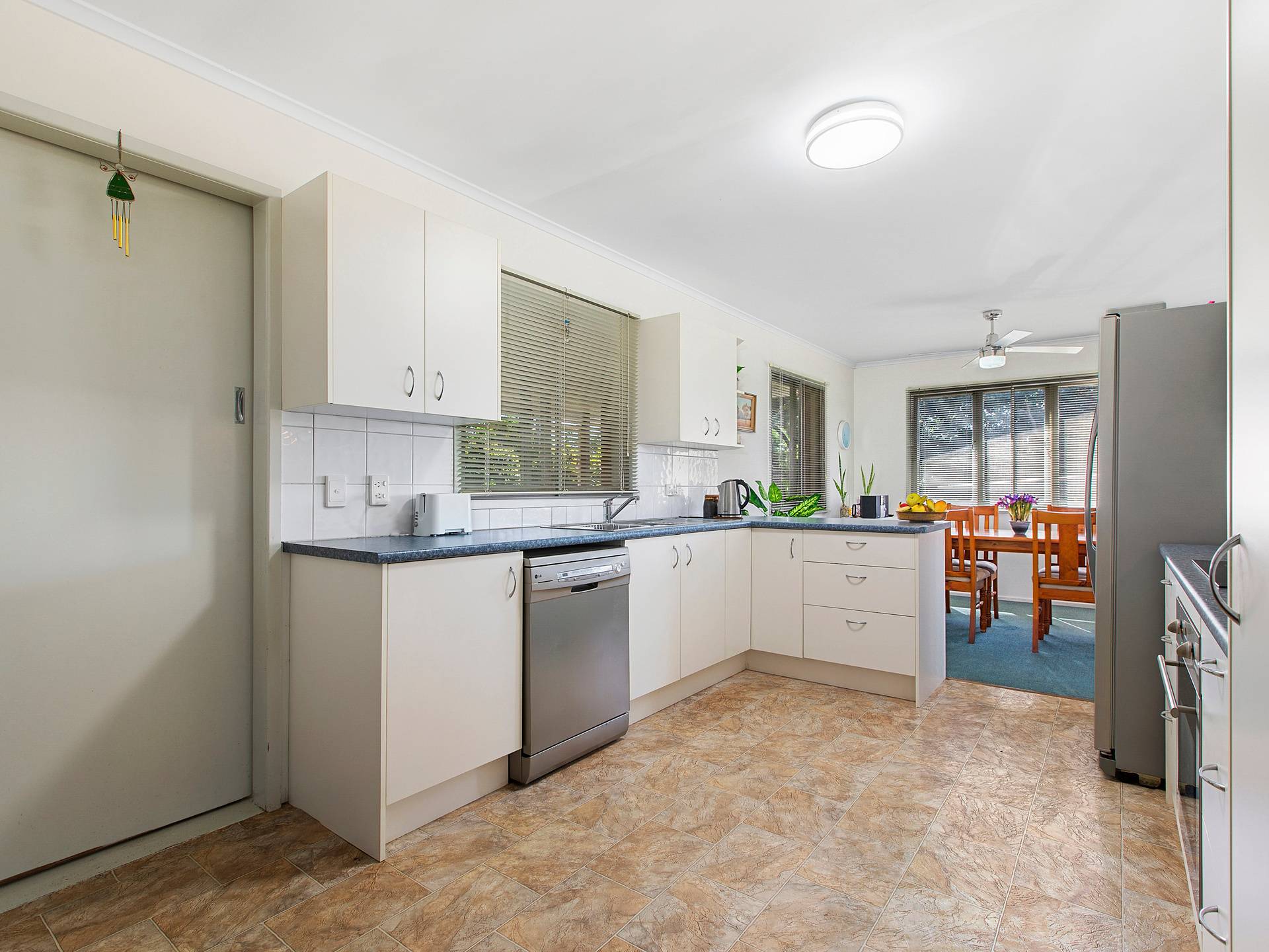 Spacious kitchen with new appliances adjoining the dining area overlooking the landscaped and fully fenced back yard and spacious undercover entertainment area.
