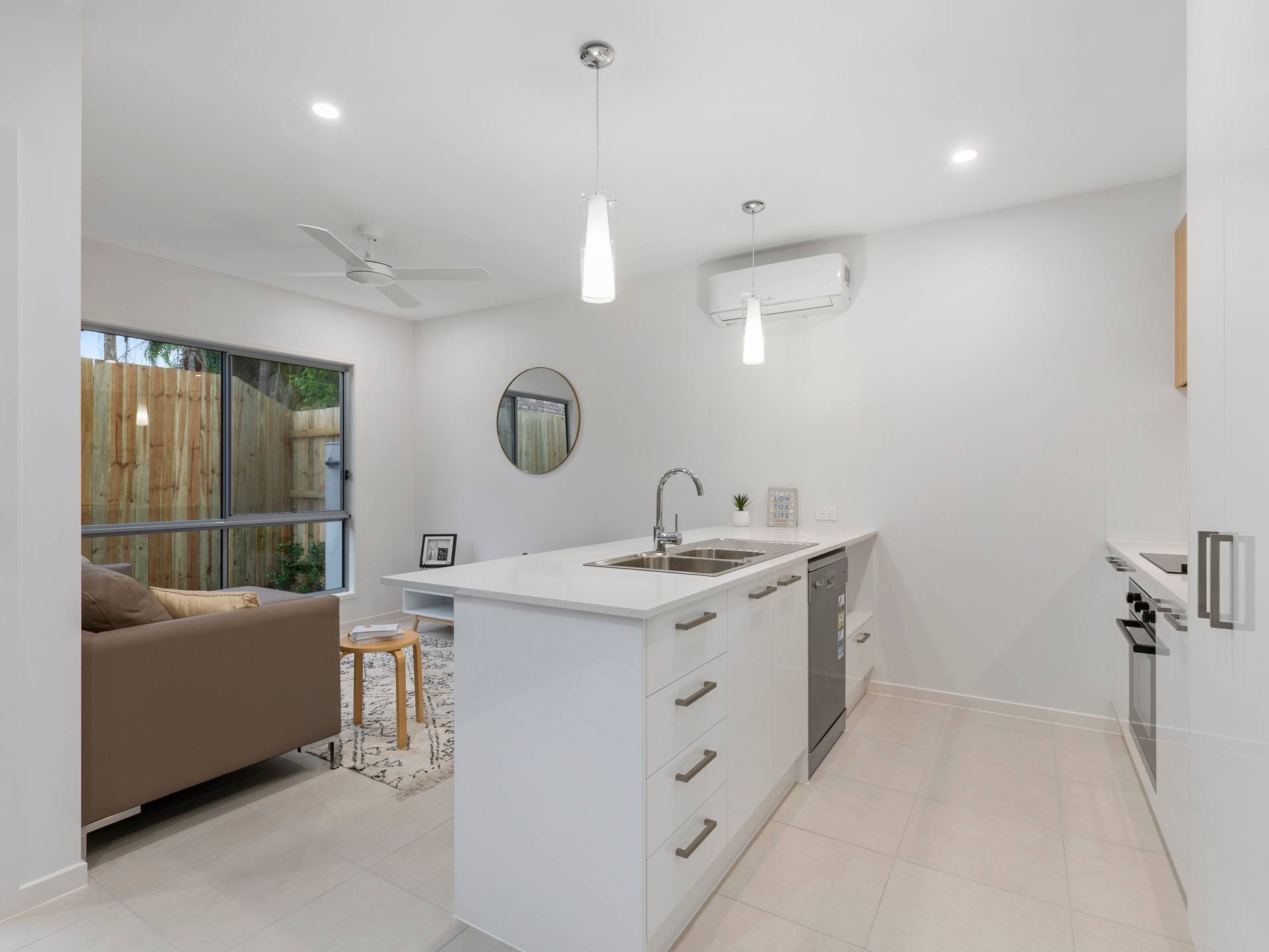 One of only five double-storey townhomes in this exclusive boutique development, the ground floor kitchen, dining and living area opens out onto a delightful courtyard.