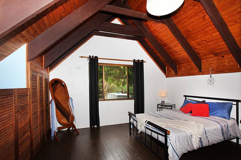 Upstairs you’ll find the oversize main bedroom plus a study nook and reading retreat; with cathedral-style ceiling plus exposed wooden beams and impressive hardwood flooring; all of which adds to the character of the home.