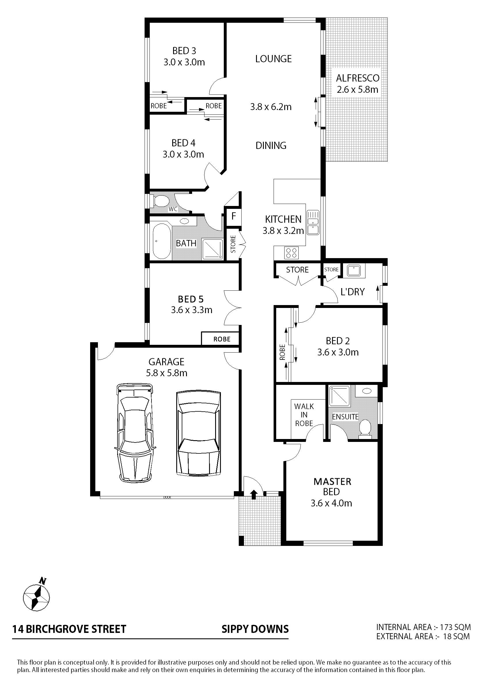 • Two garage parking spaces available in the double lock-up garage (included with Master Bedroom and Bedroom 5)