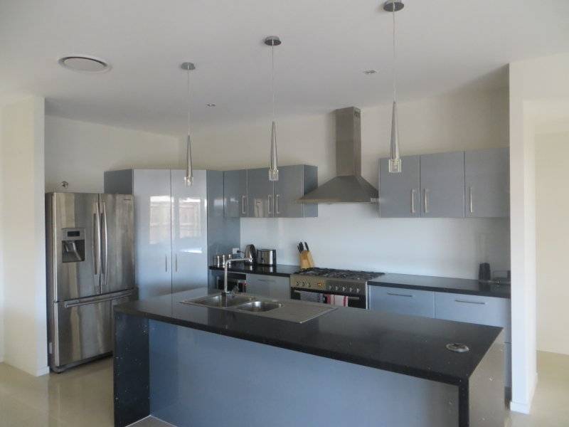 - Open plan kitchen with stone benchtops, ample cupboard space, double drawer dishwasher and gas chef style stove/oven.