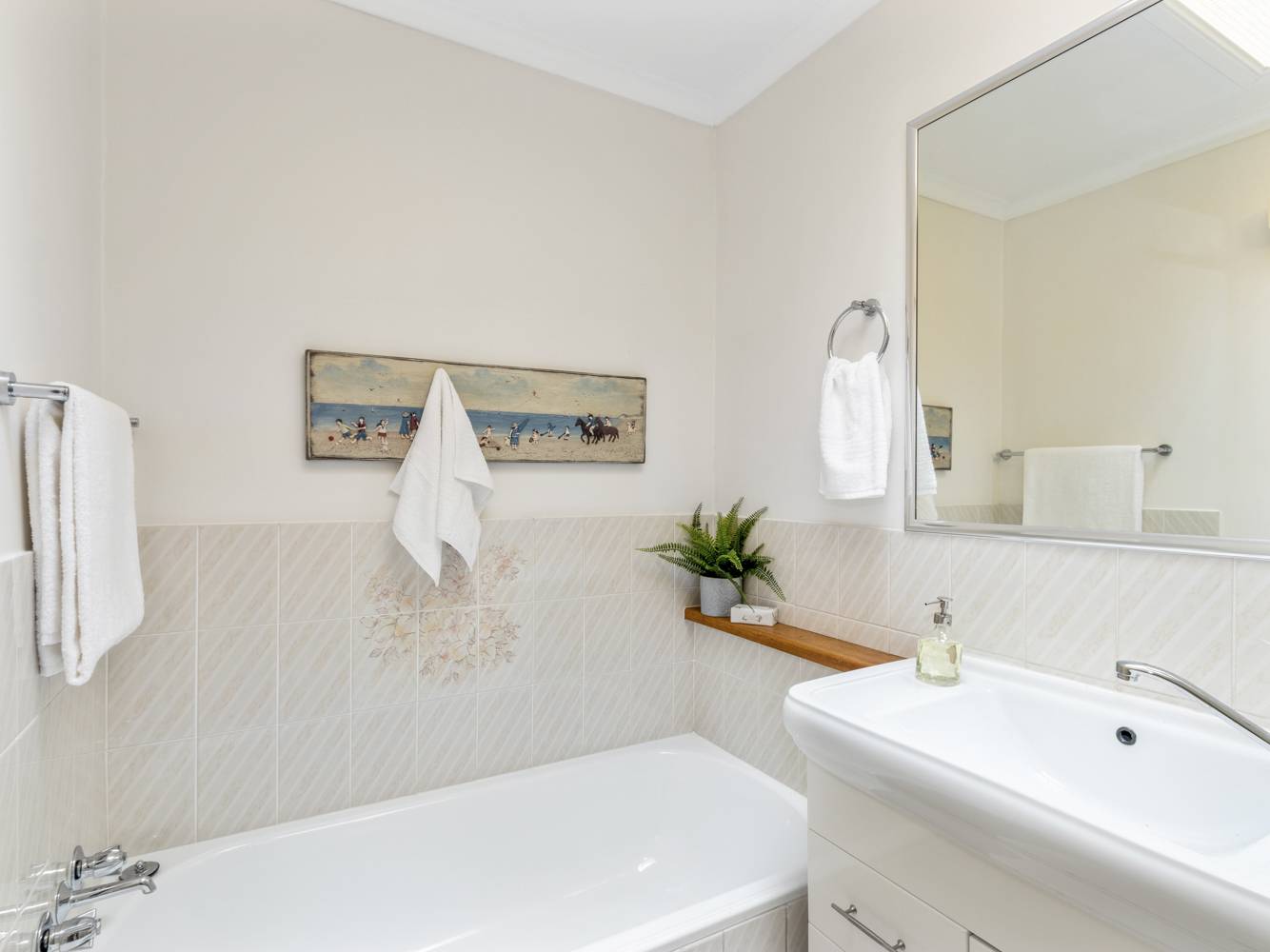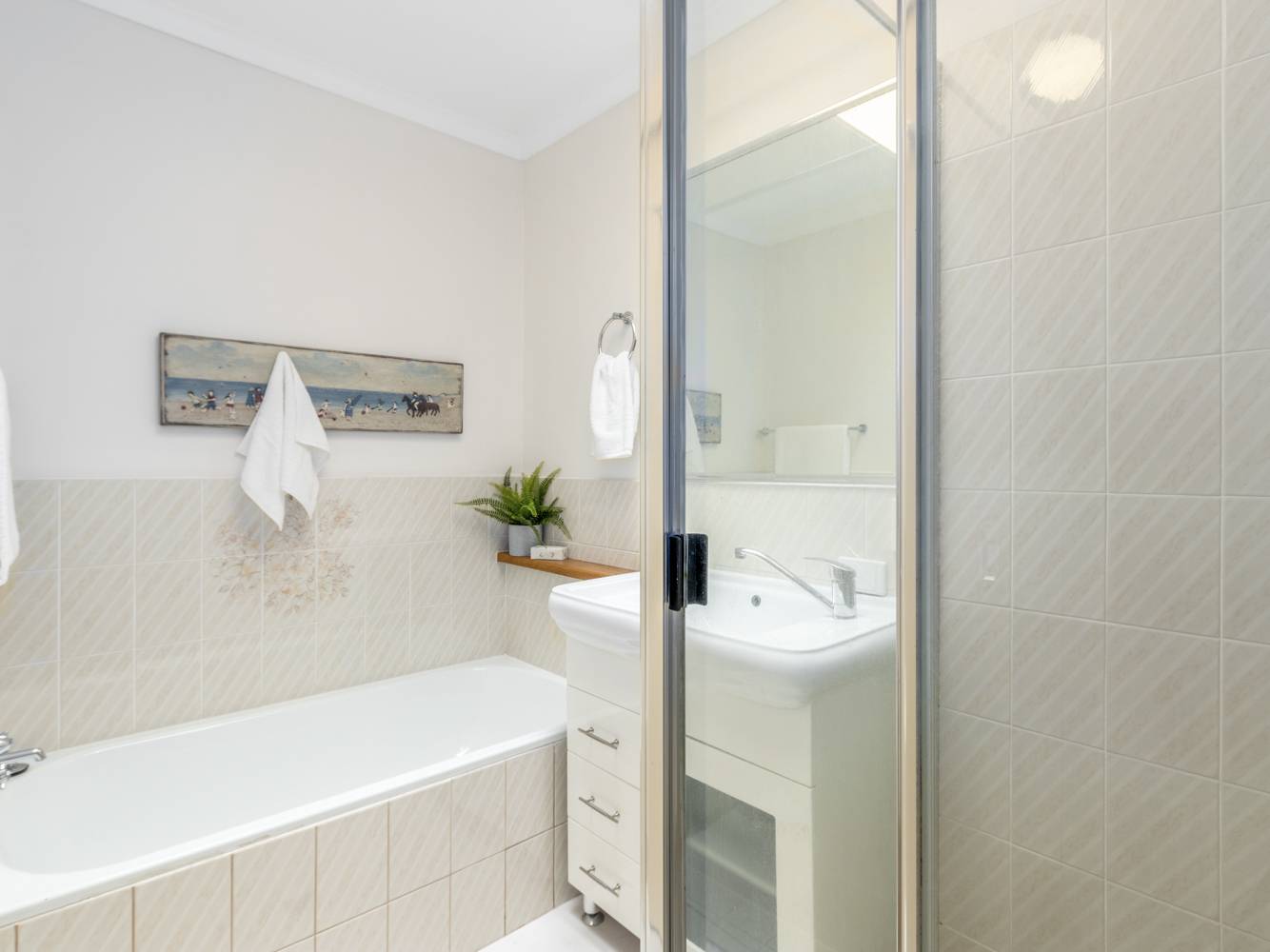 Bathroom id upstairs conveniently located to both bedrooms plus there is a separate toilet.
