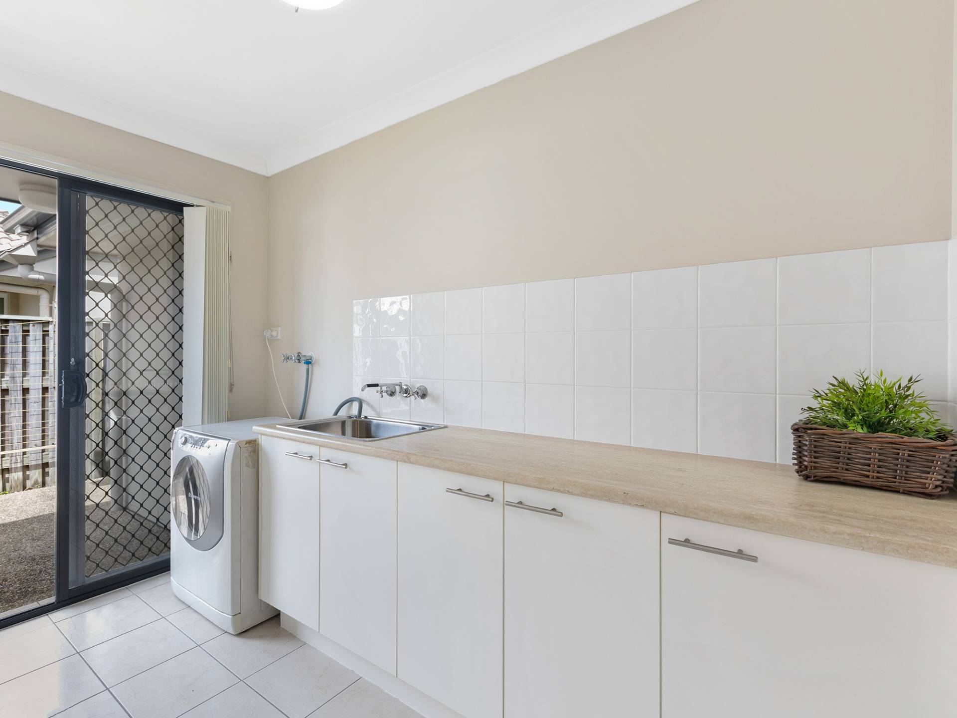 • A dedicated laundry room, with built in cupboards and worktops