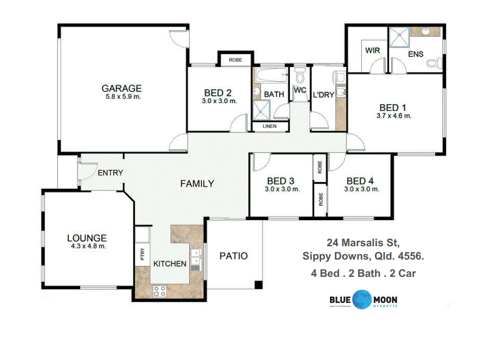 • The generous main bedroom has an ensuite bathroom, walk-in wardrobe, air conditioning and your own patio, accessed through large sliding doors.