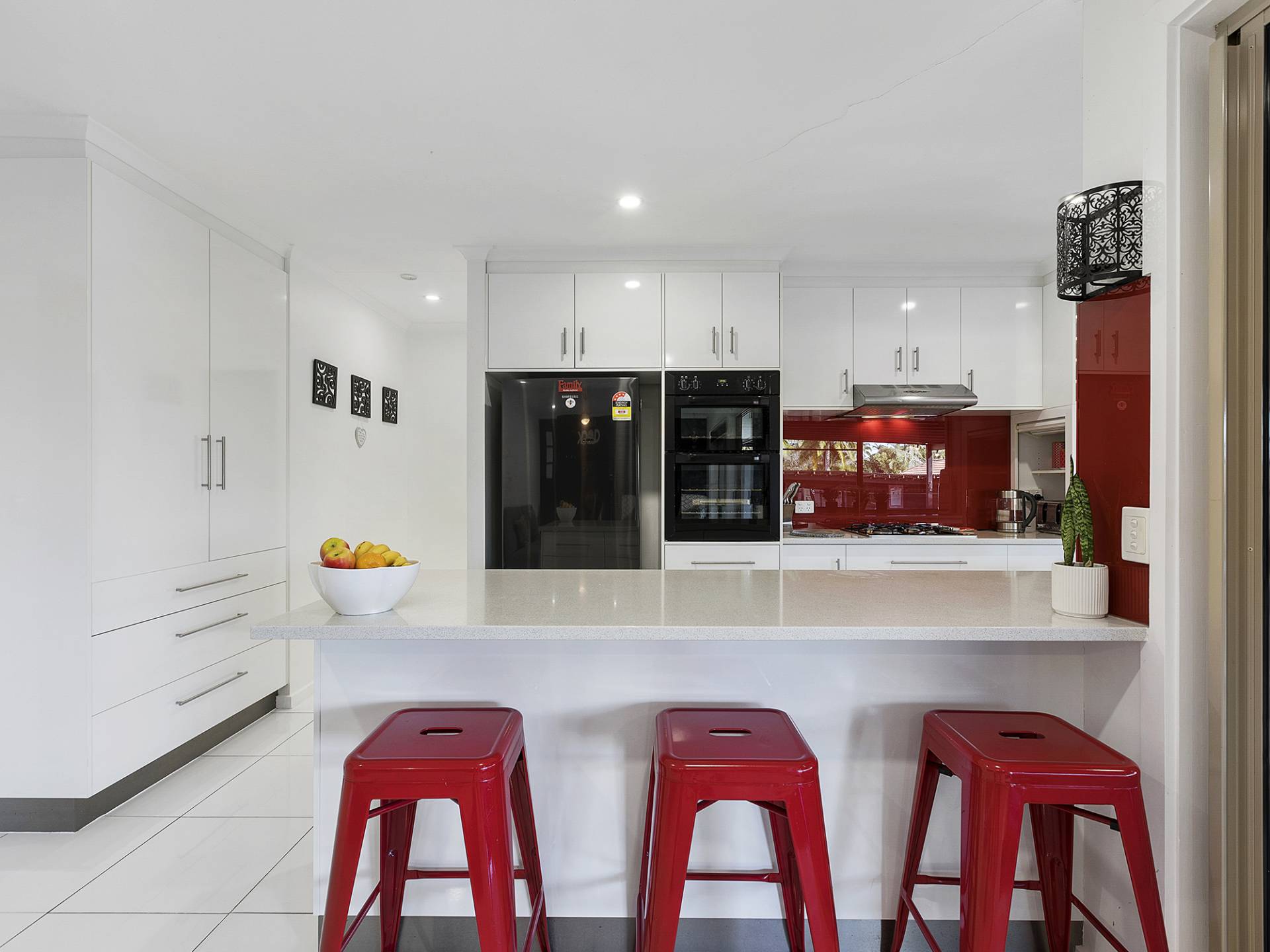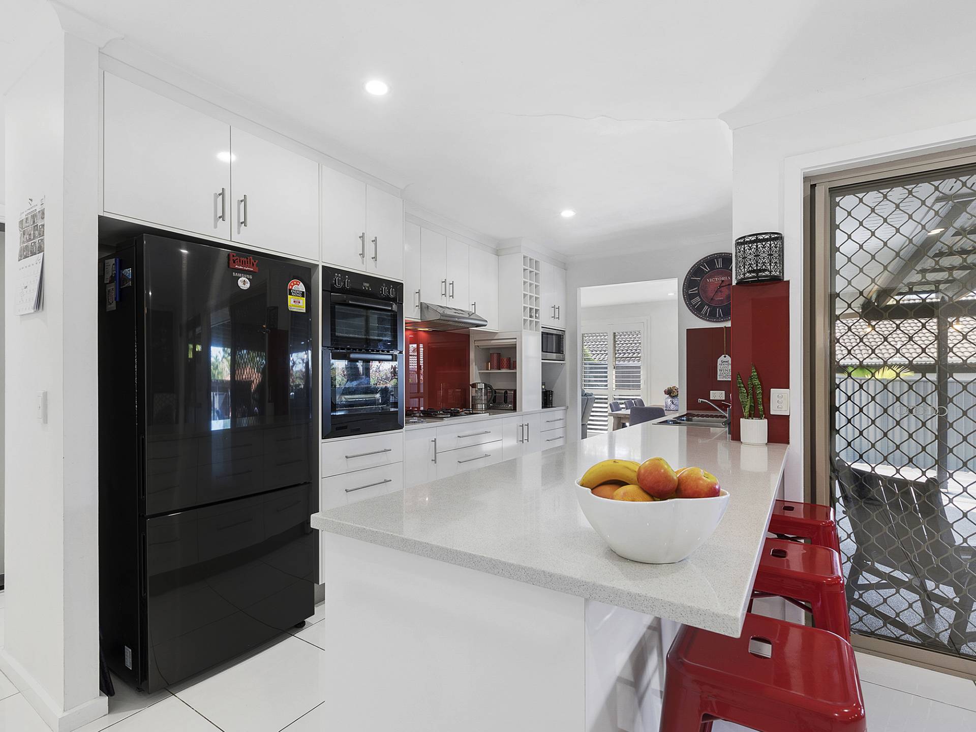 A beautiful kitchen is set in the heart of the home. Boasting modern appliances, huge brekky bar and views out over the outdoor entertaining and pool area, the home chef will always be a part of the action making entertaining a breeze.