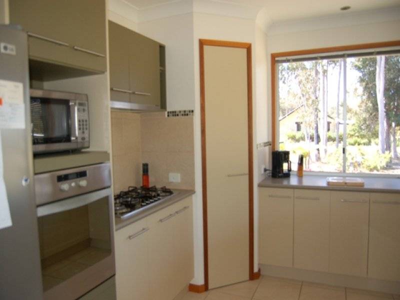 The kitchen overlooks a large timber decked entertaining pavilion and across to the sparkling in ground pool.