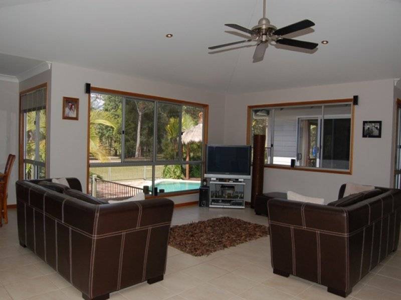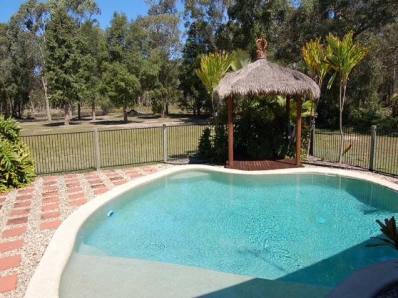 This elevated pavilion style home is in need of a large family – truly inspiring, set on a level 6532 sm2 park like block adjoining ‘Gallaway’s Lagoon’ a beautiful private 4 acre lake stocked with fish and red claw, with views across to Mt Tinbeerwah. The property is fully fenced, irrigated from the lake, very easy to maintain and has plenty of storage in the 3 bay shed.