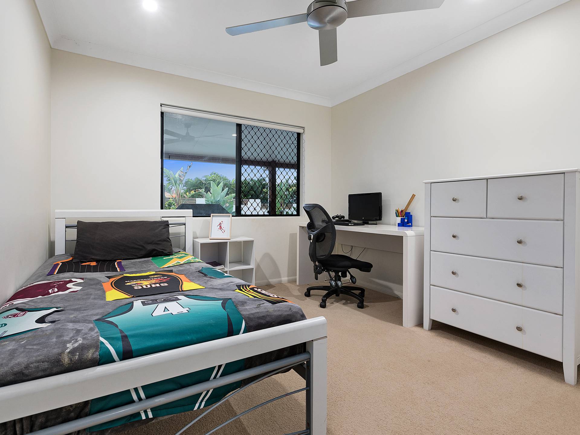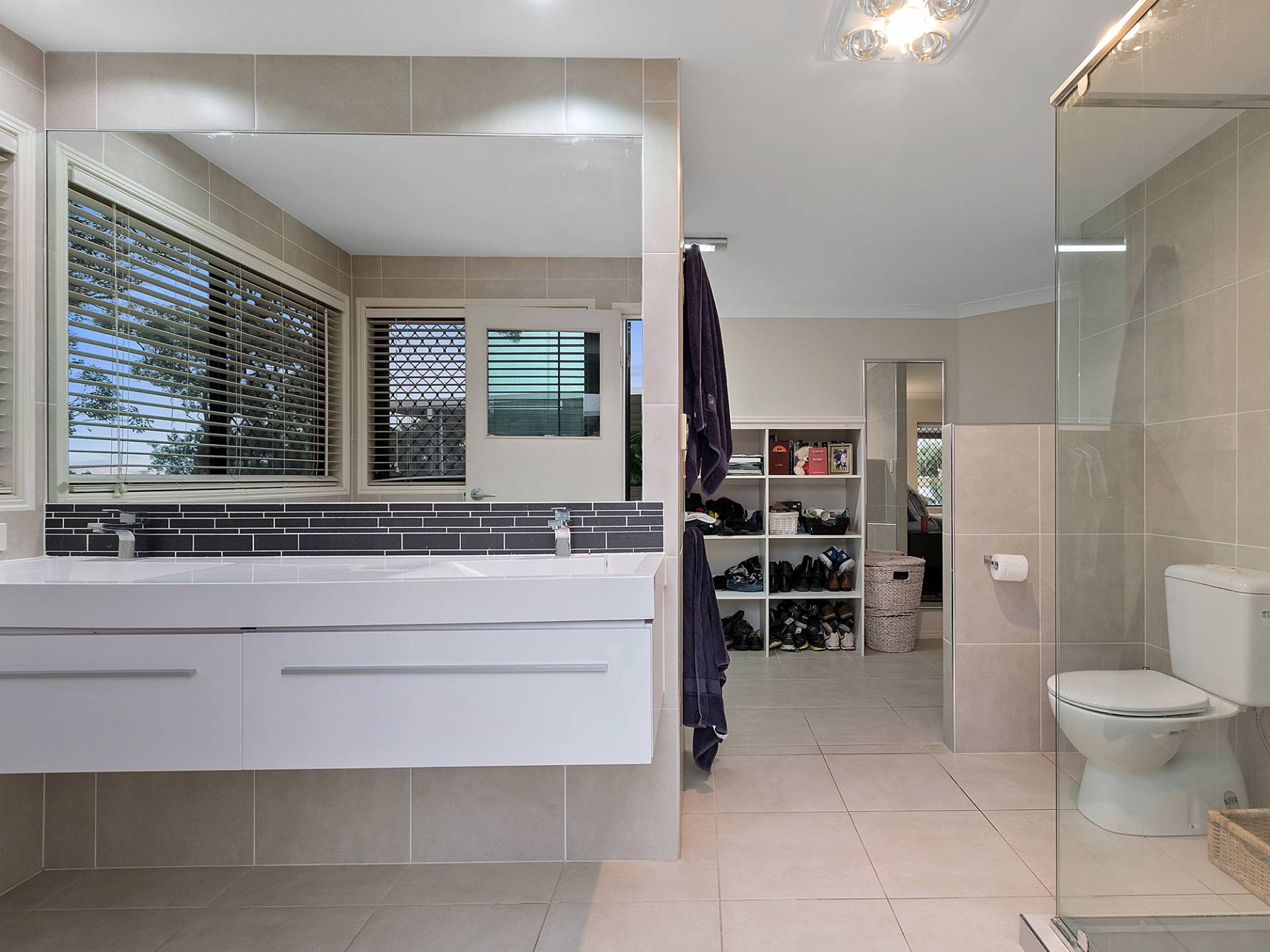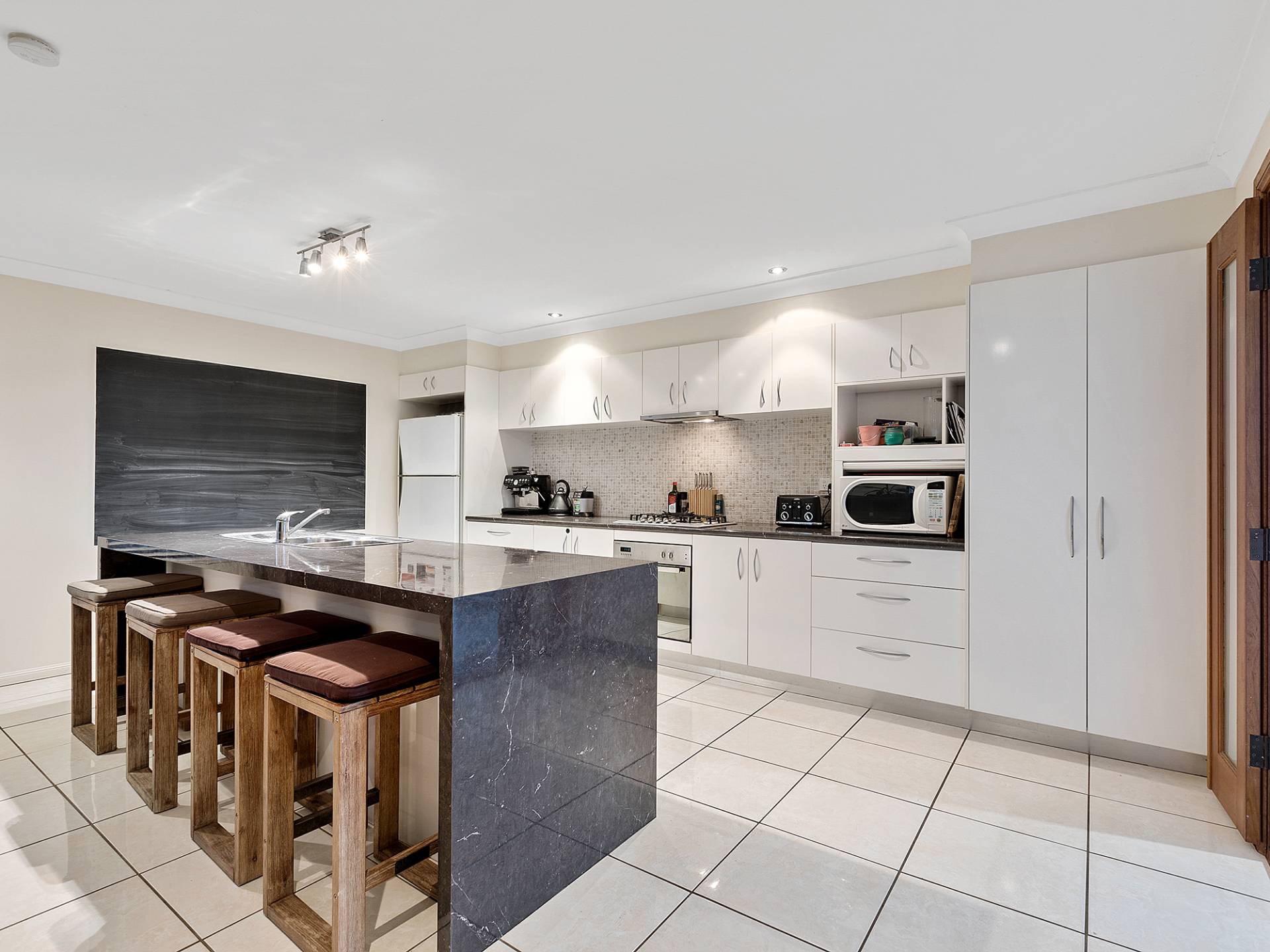 The main residence provides functional living and loads of separation. The parents retreat at one end of the home also provides a stunning en suite, fully tiled from floor to ceiling, complete with his and hers basins. 3 more large bedrooms are central to enjoy the benefit of the dedicated gym space (or second living area / media room).