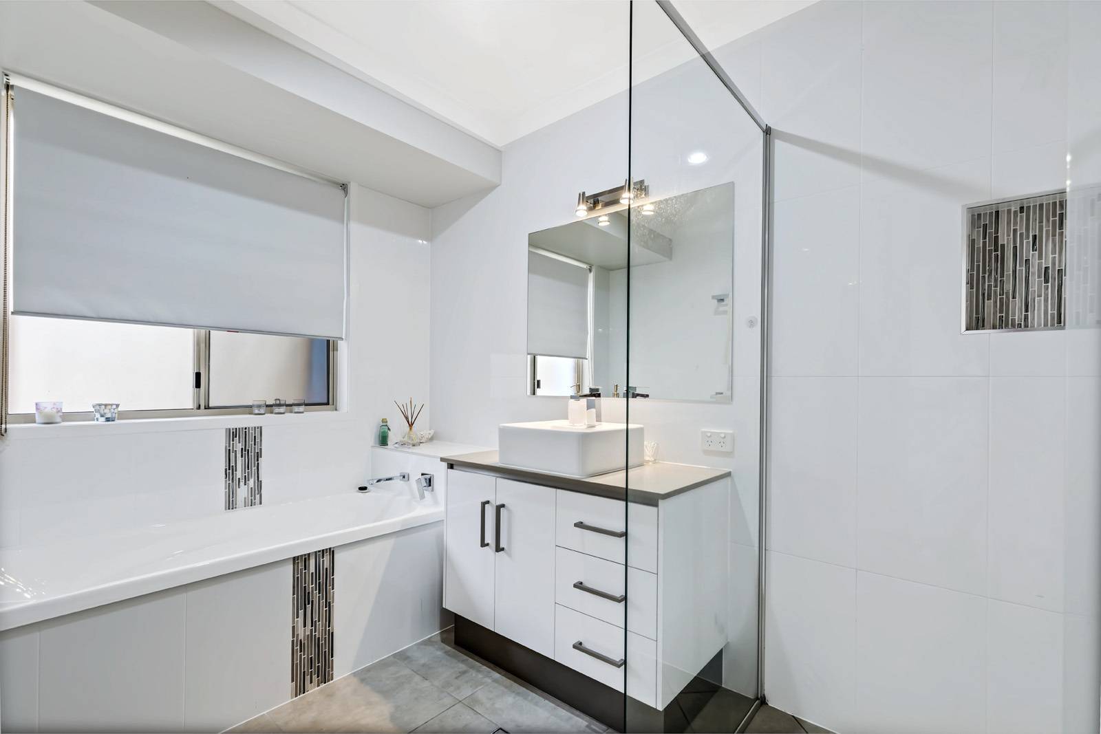 The contemporary walk through kitchen will impress the chef of the house, boasting quality appliances and plenty of both storage and bench space. Centrally positioned between two internal living zones and overlooking the back yard help make it an ideal family layout.