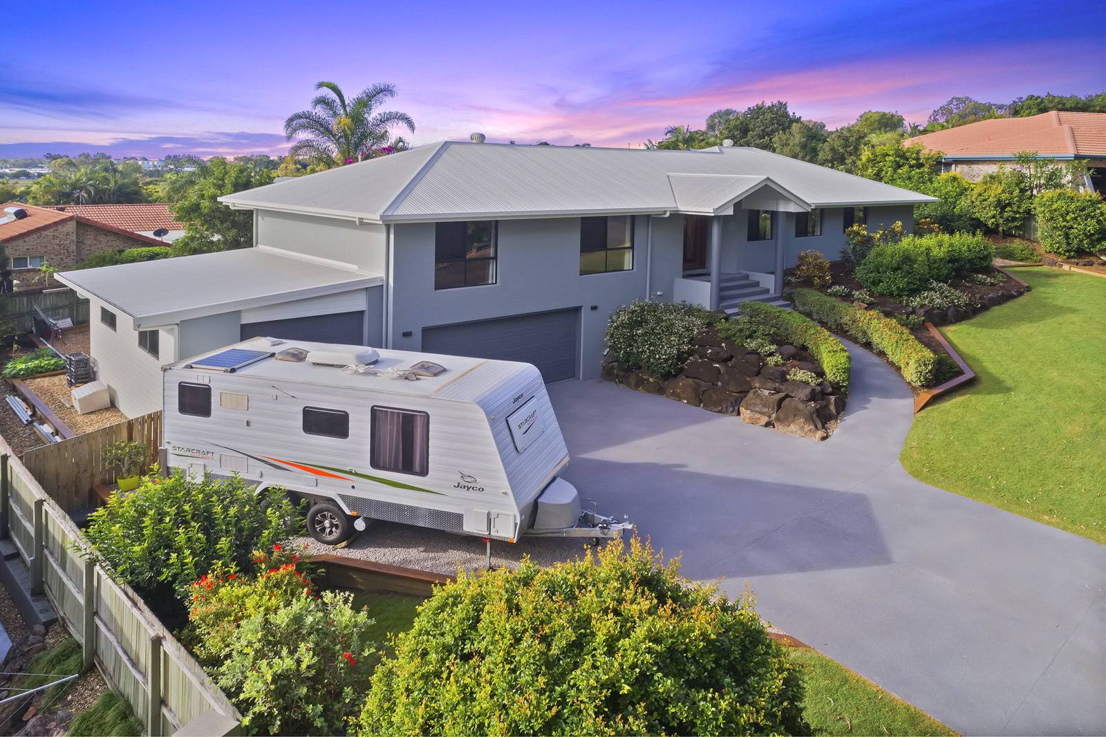 Downstairs, two large vehicles will comfortably call the garage home, there is also loads of storage under the house and a purpose built oversized workshop / garage for the boat or trailer on the left hand side of the property (2.7 metre clearance).