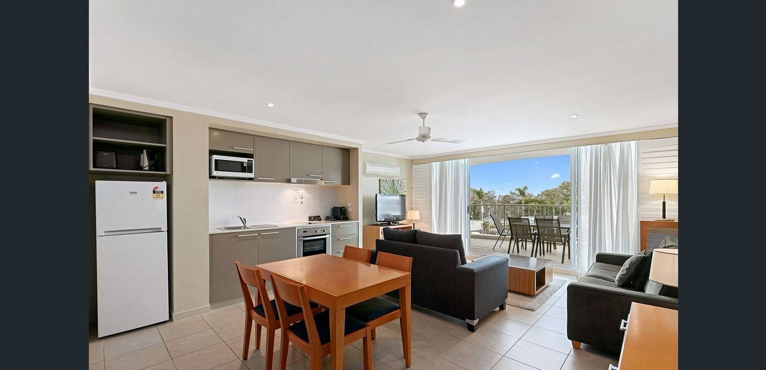 Two bedroom apartment with a luxurious ensuite, the living area flows out onto a large undercover balcony with beautiful views and a well equipped kitchen, your biggest problem will be to stay home for the night in this stunning apartment or head out and see all that the Fraser coast has to offer.