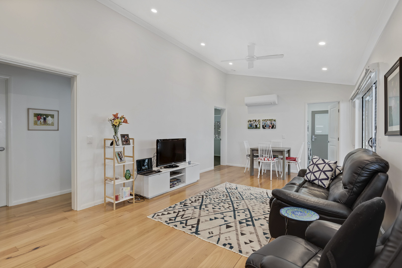 • Air conditioned, open plan living and dining with high raked ceilings and gorgeous timber floors