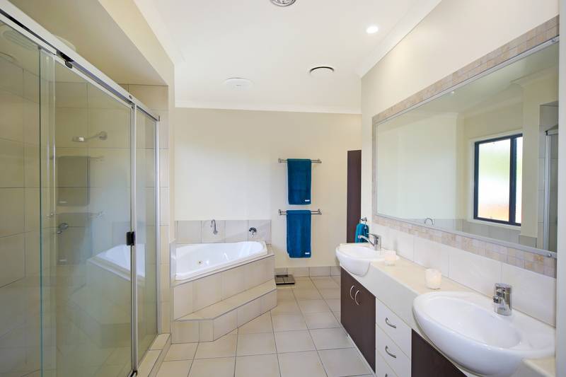 One of our favourite aspects of this home is that the master bedroom is well removed from the other bedrooms and also has a very large ensuite with a large walk-in robe. The master also has its own private deck which makes it feel like a parent’s retreat. The remaining bedrooms include built in robes, ducted air conditioning vents, ceiling fans and LED downlights.