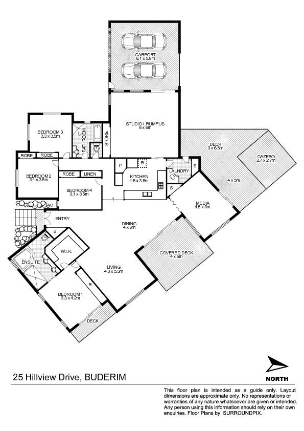 This single level home includes four bedrooms plus media room, a large studio/rumpus which is currently being used as a home business, two bathrooms, a spacious modern kitchen, two separate living areas, two car accommodation and covered decks.
