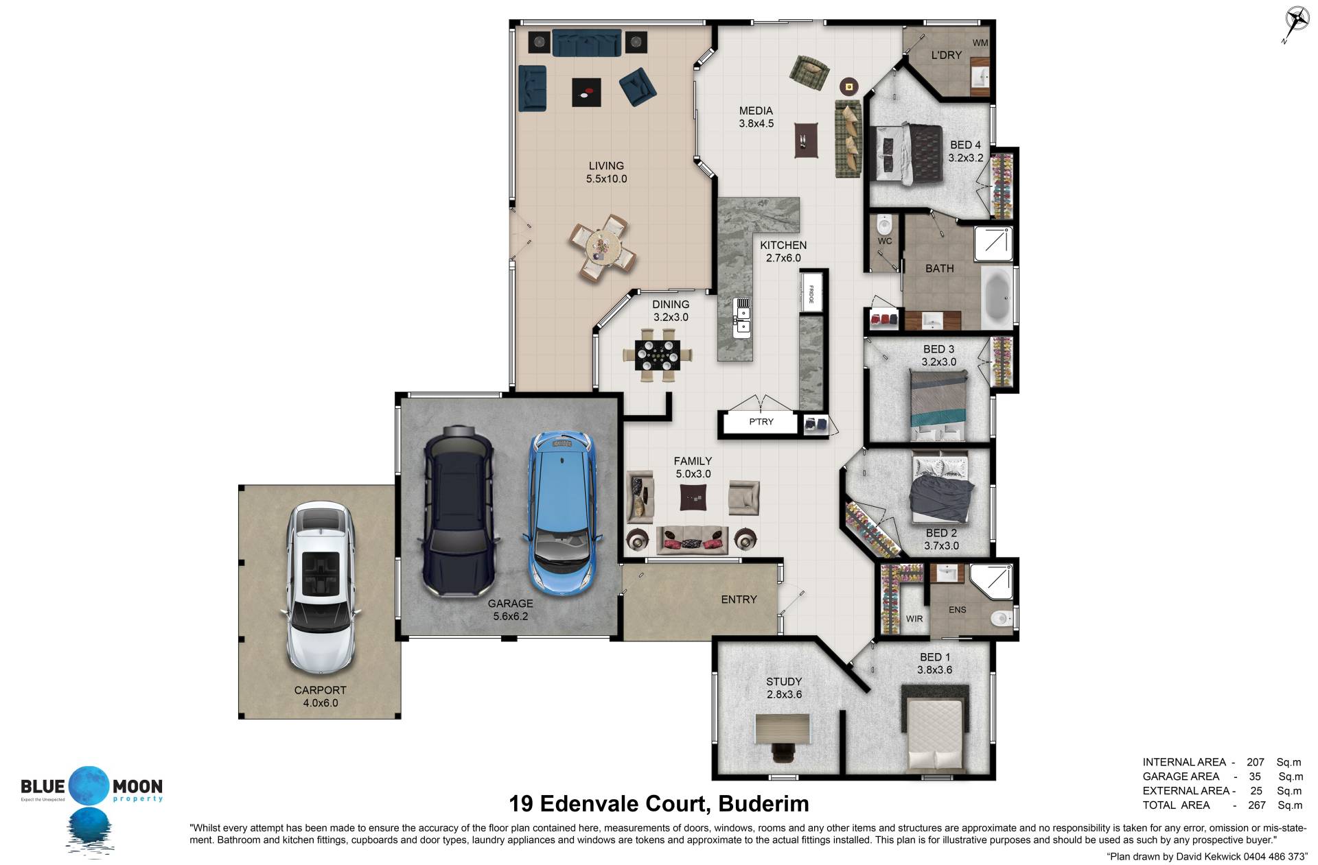 • 3000 litre water tank connected to laundry and perfect to water the lawn and garden, keeping water costs to a minimum