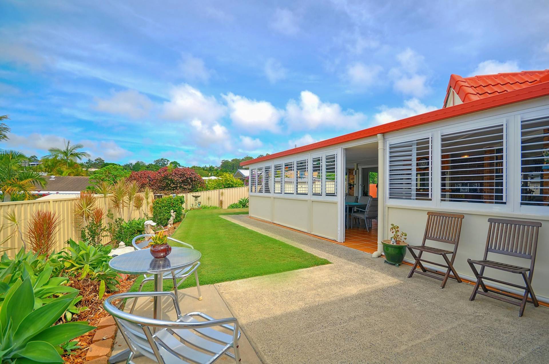 • Easy care gardens on a low maintenance, flat, fully fenced yard with colorbond fencing offering plenty of room for the kids and pets to play or room for a pool if so desired