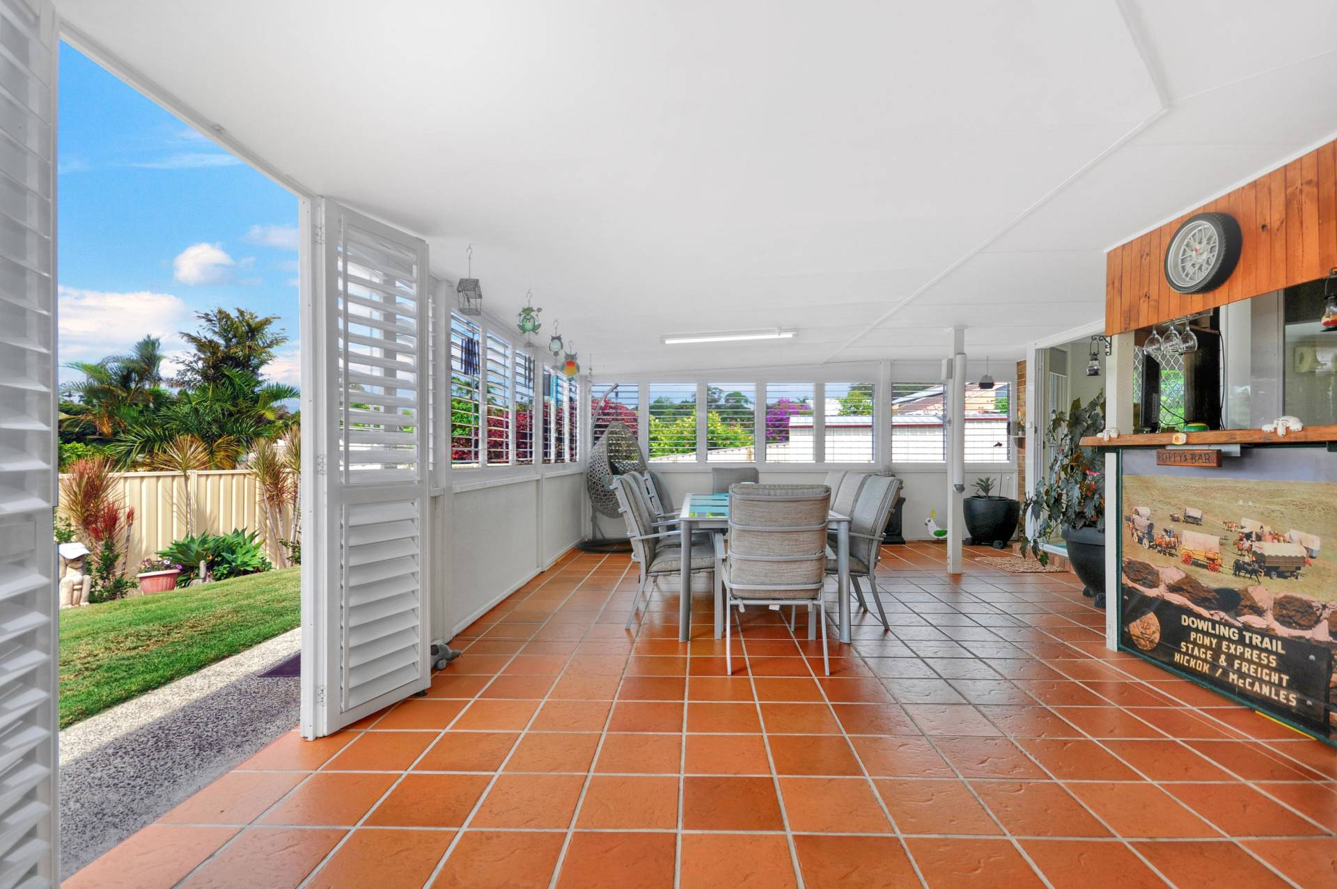 A stand out feature of this property is the enormous indoor/outdoor entertaining area, the perfect place to relax or entertain family and friends all year round. Fitted out with your own bar and plantation shutters to adjust to all types of weather. You will live out here!