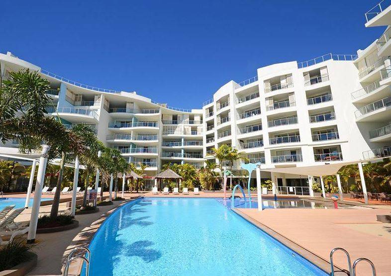 This stunning two-bedroom unit with 3m high ceilings comes fully furnished and is conveniently located on the ground floor in the modern and very popular ocean front resort, Oaks Hervey Bay.
