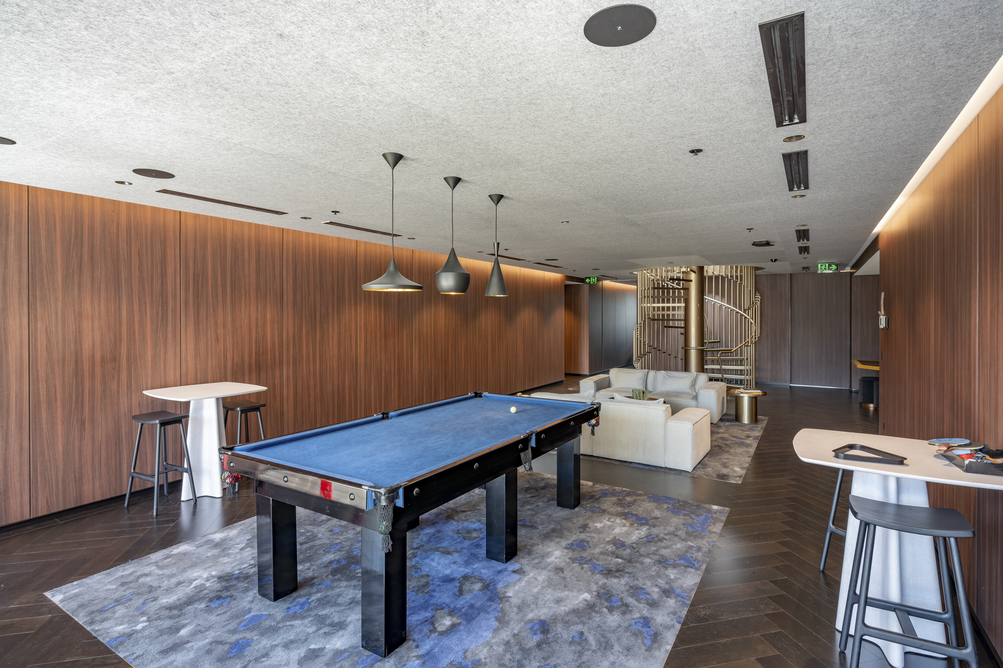 * Indoor entertaining area hosting a wet bar, billiards table and cinema